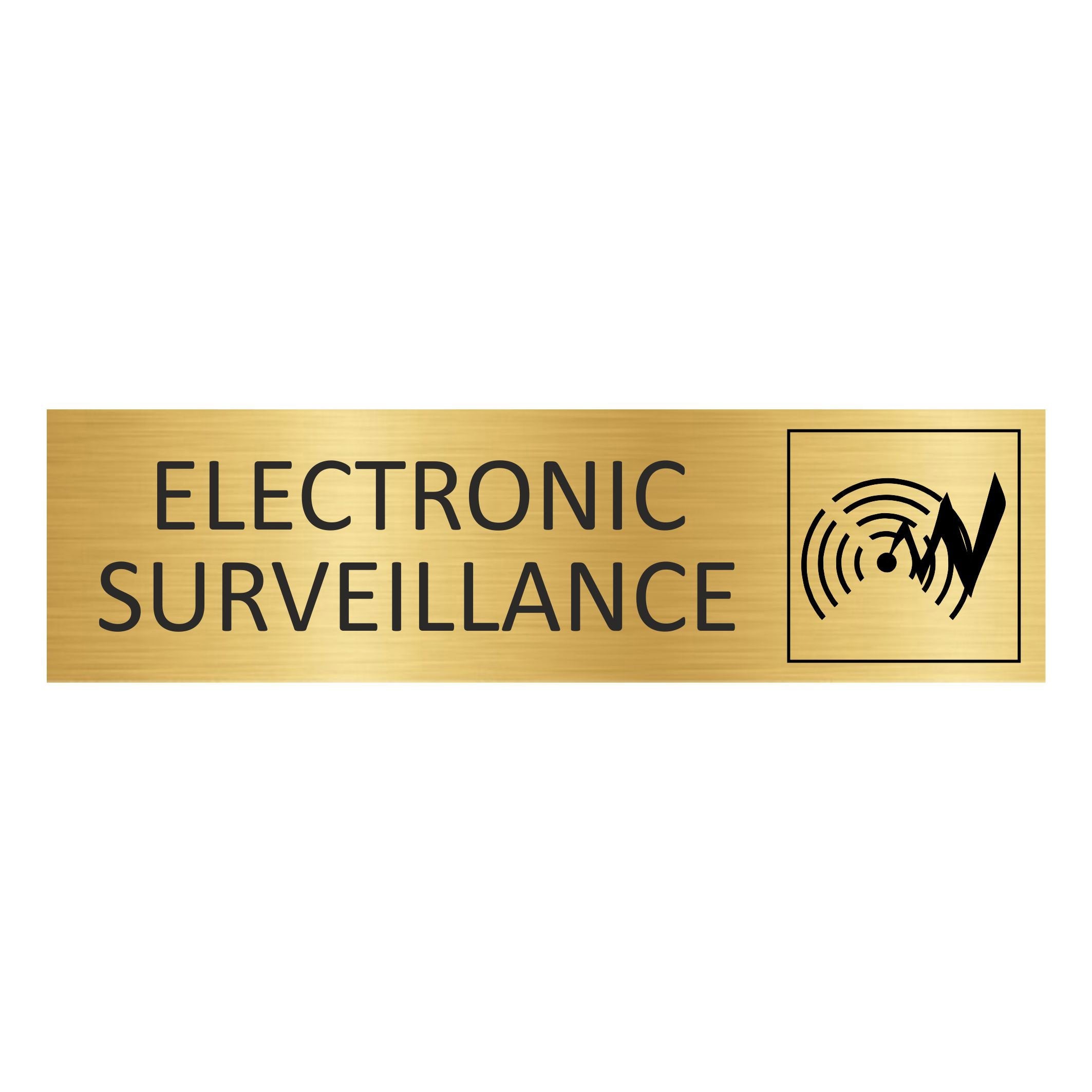 Goldenfarbiges Aluminium Türschild Electronic Surveillance 165x45mm mit 3M-Tape zur Befestigung- pro Stück