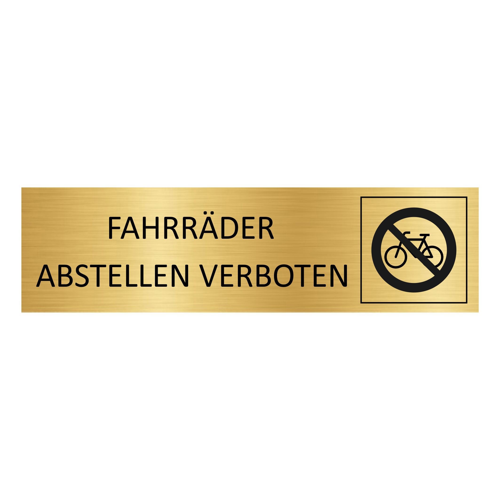 Goldenes Aluminium Türschild Fahrräder abstellen verboten 165x45mm mit 3M-Tape zur Befestigung- pro Stück