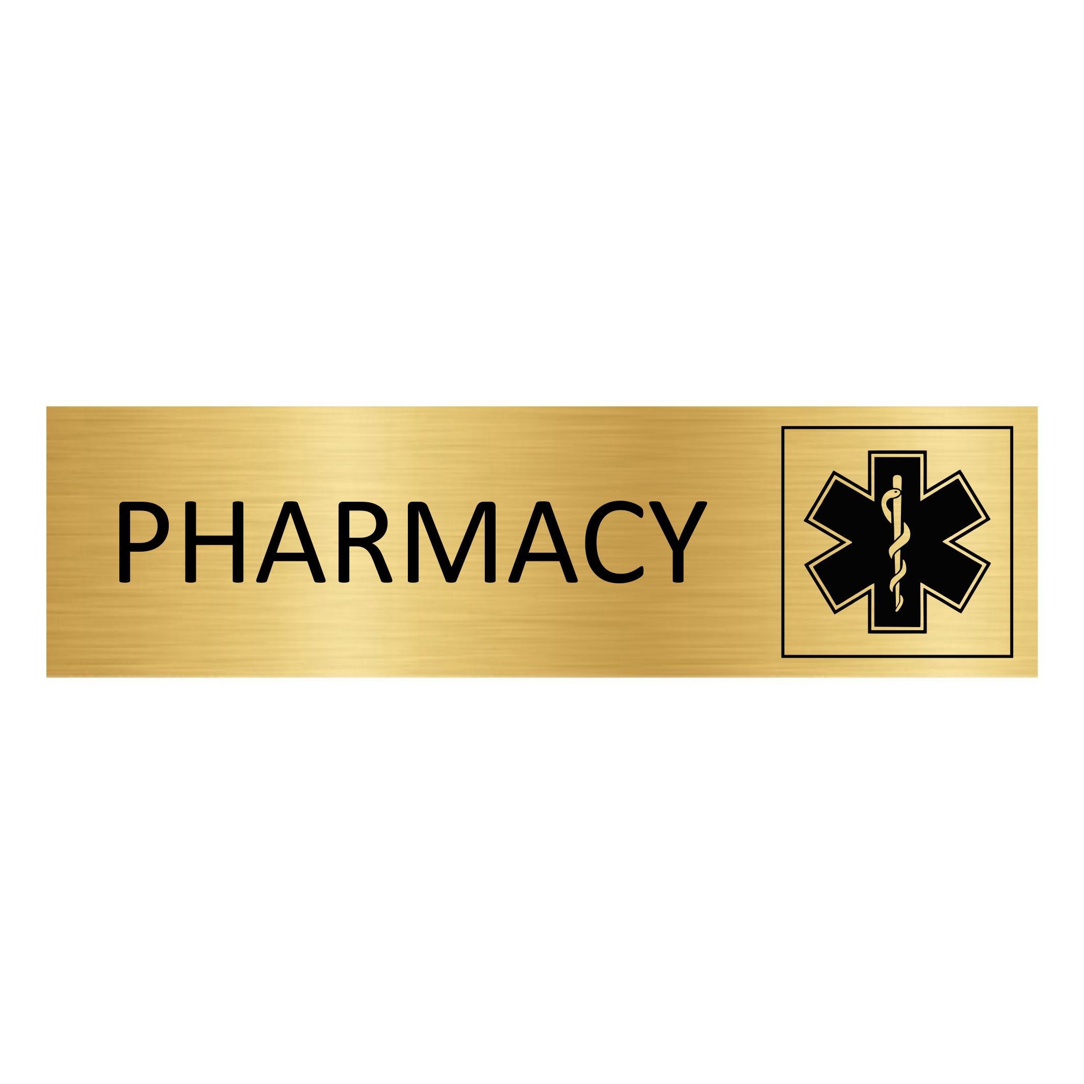 Goldenfarbiges Aluminium Türschild Pharmacy 165x45mm mit 3M-Tape zur Befestigung- pro Stück