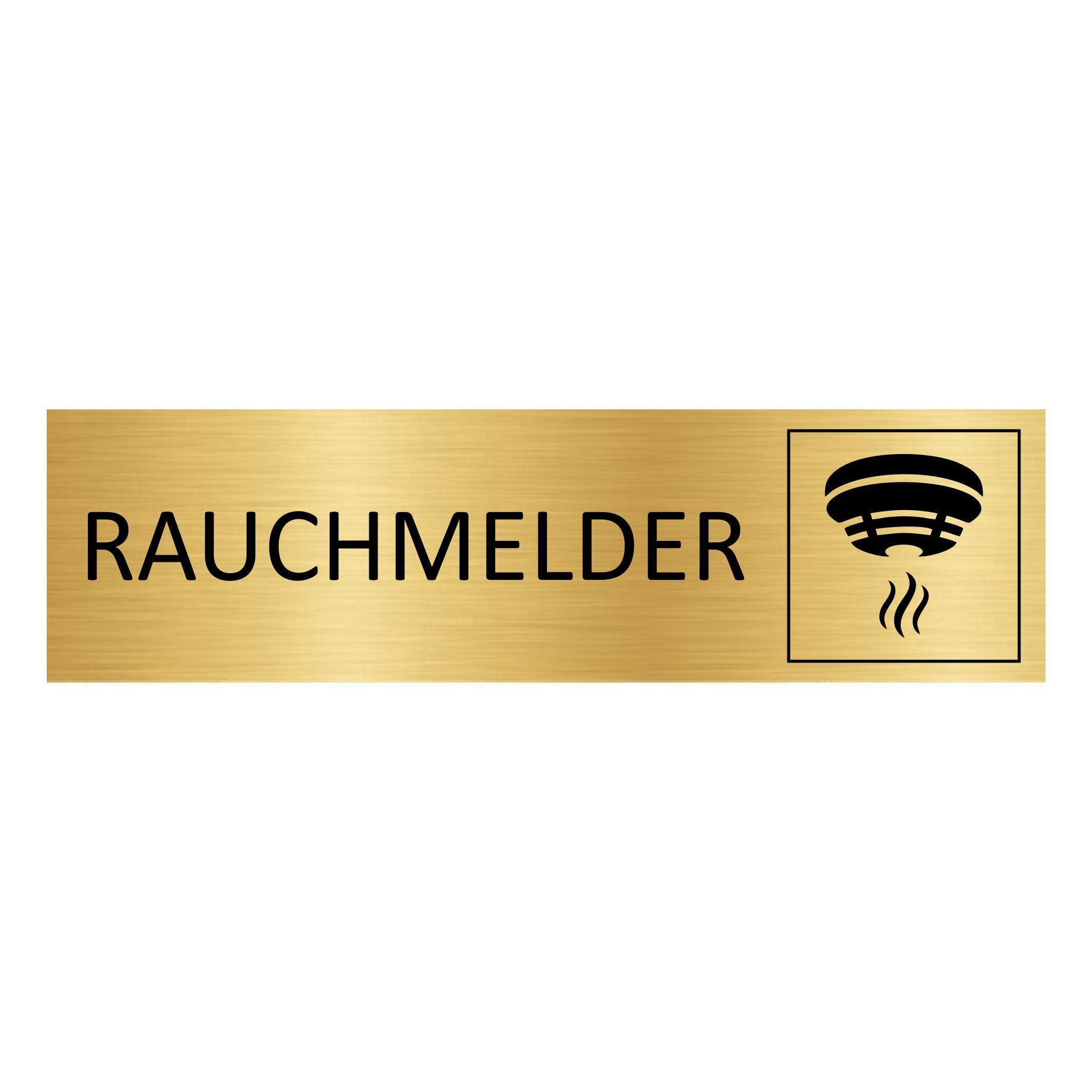 Goldenes Aluminium Türschild Rauchmelder 165x45mm mit 3M-Tape zur Befestigung- pro Stück