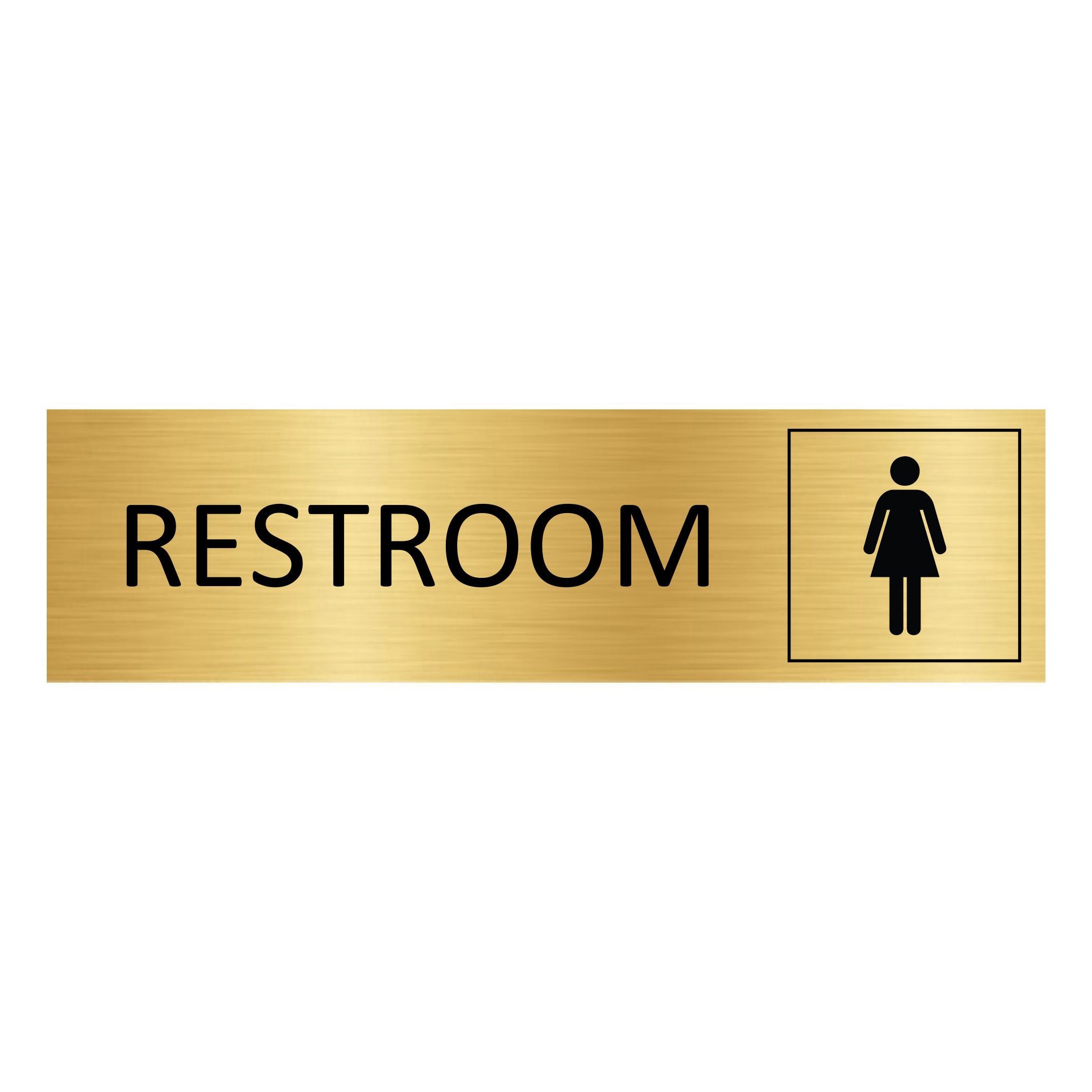Goldenfarbiges Aluminium Türschild Restroom Damen 165x45mm mit 3M-Tape zur Befestigung- pro Stück