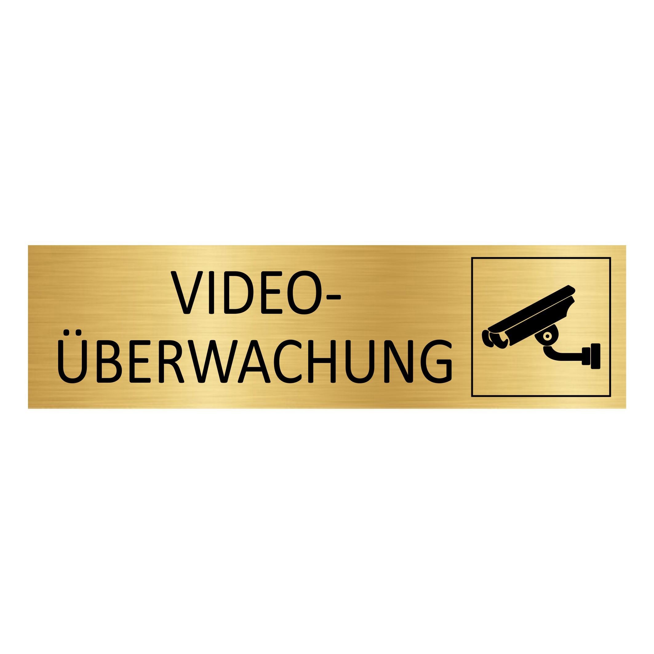 Goldenes Aluminium Türschild Videoüberwachung 165x45mm mit 3M-Tape zur Befestigung- pro Stück
