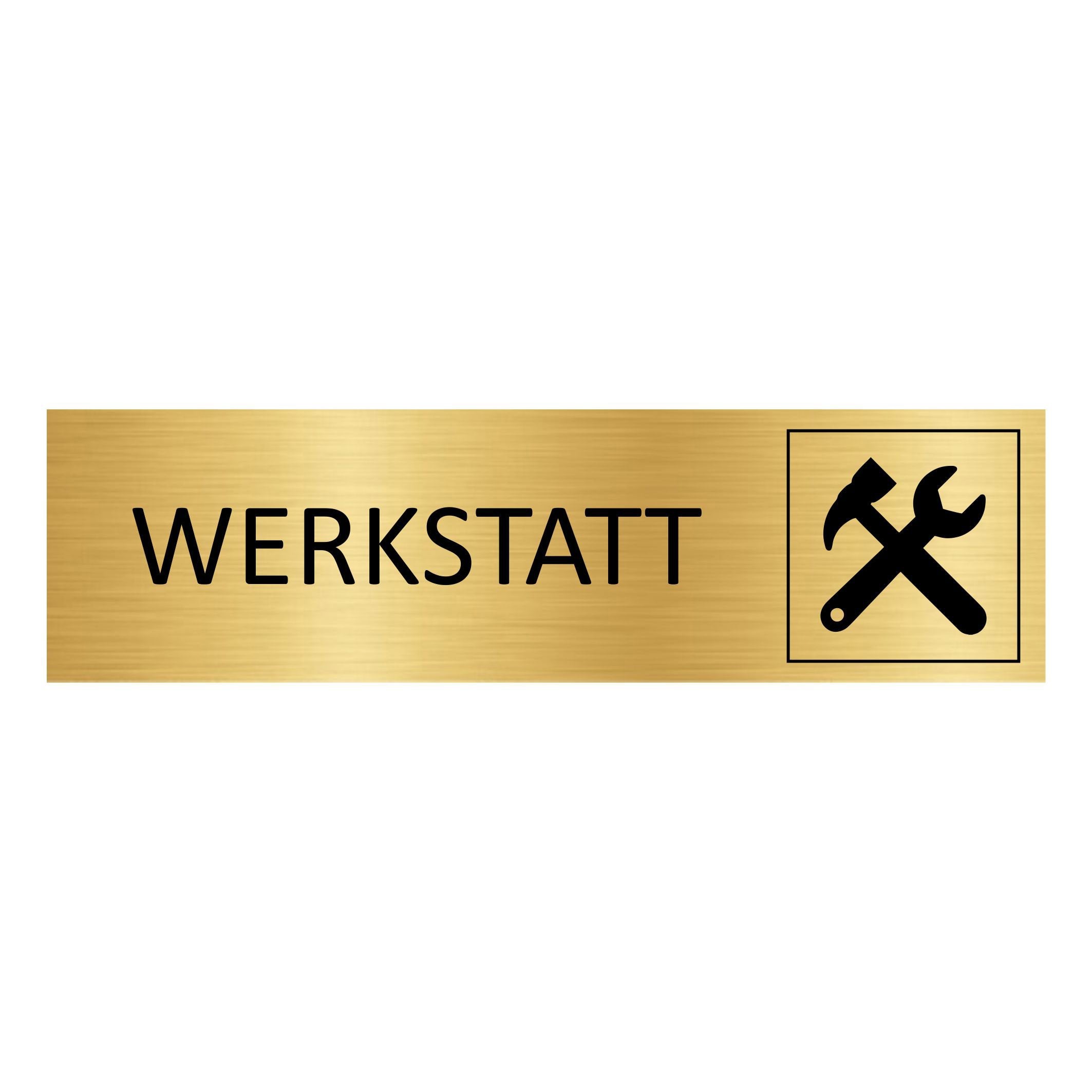 Goldenes Aluminium Türschild Werkstatt 165x45mm mit 3M-Tape zur Befestigung- pro Stück