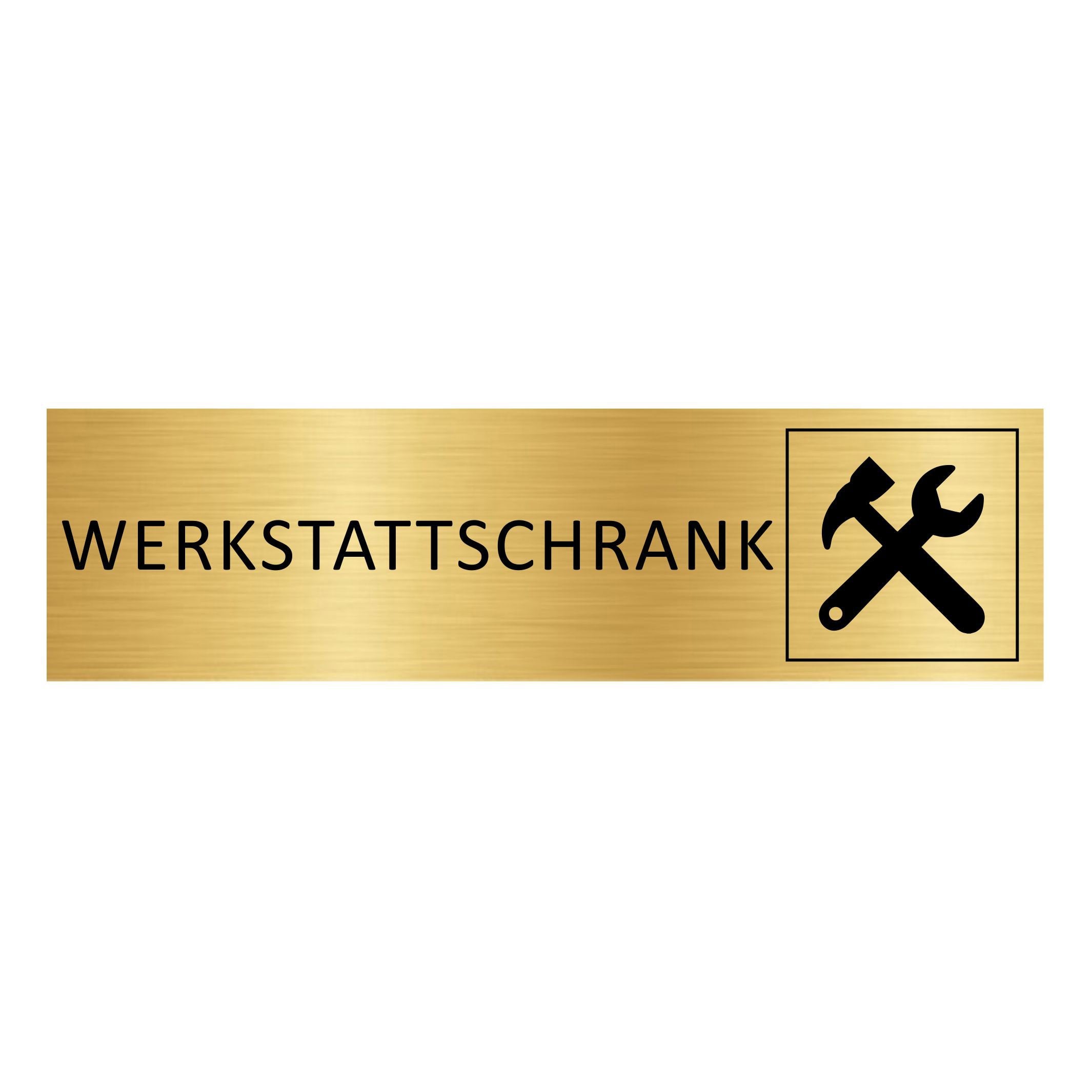 Goldenes Aluminium Türschild Werkstattschrank 165x45mm mit 3M-Tape zur Befestigung- pro Stück