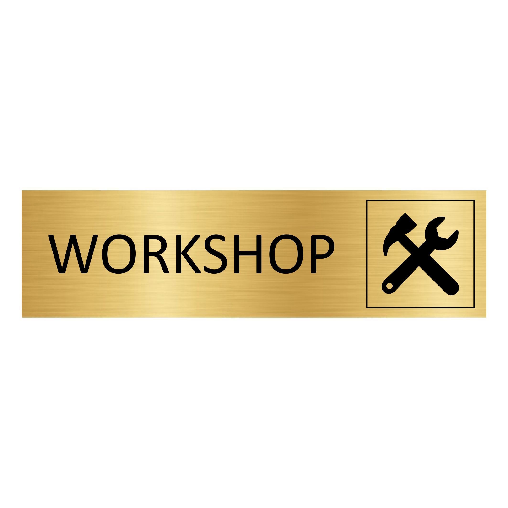 Goldenfarbiges Aluminium Türschild Workshop 165x45mm mit 3M-Tape zur Befestigung- pro Stück