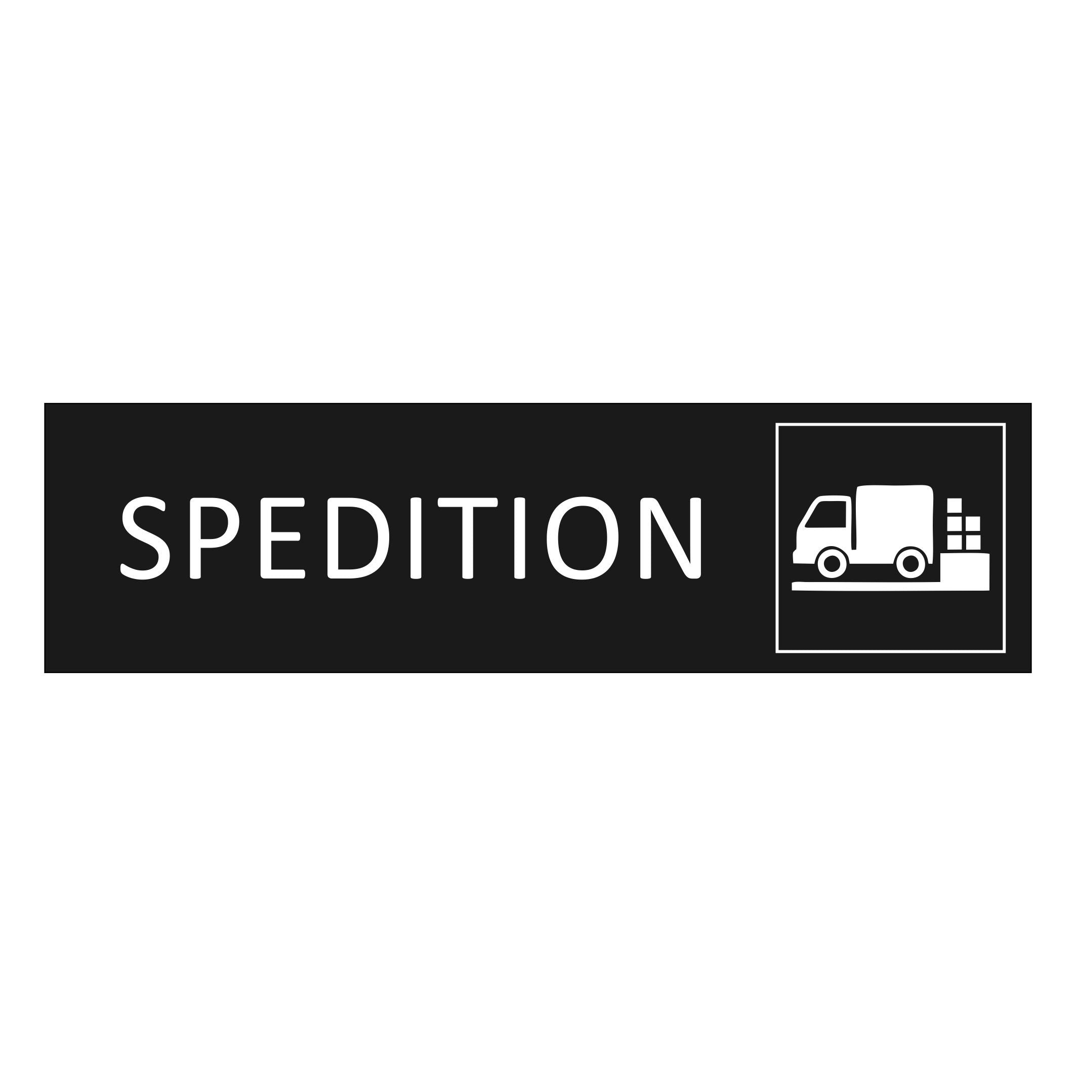Schwarzes Aluminium Türschild Spedition 165x45mm mit 3M-Tape zur Befestigung- pro Stück