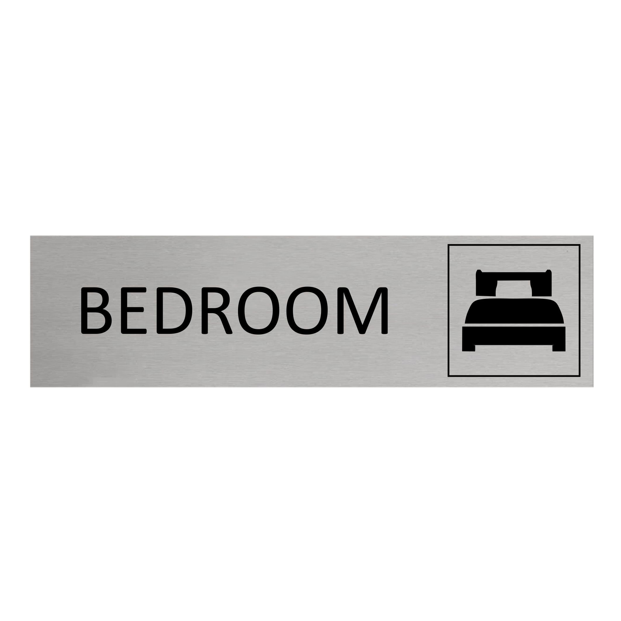 Aluminium Türschild Bedroom 165x45mm mit 3M-Tape zur Befestigung, einfache Kennzeichnung von Räumen und Bereichen