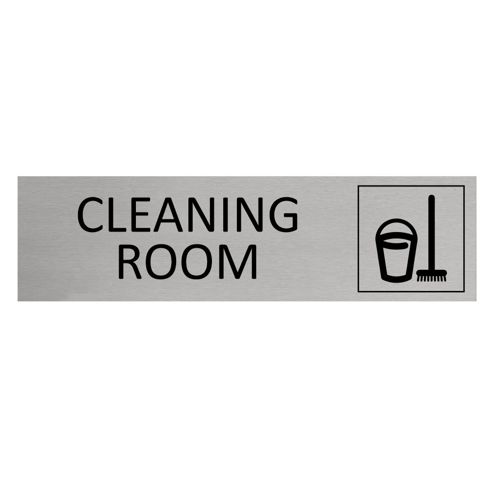 Aluminium Türschild Cleaning Room 165x45mm mit 3M-Tape zur Befestigung, einfache Kennzeichnung von Räumen und Bereichen