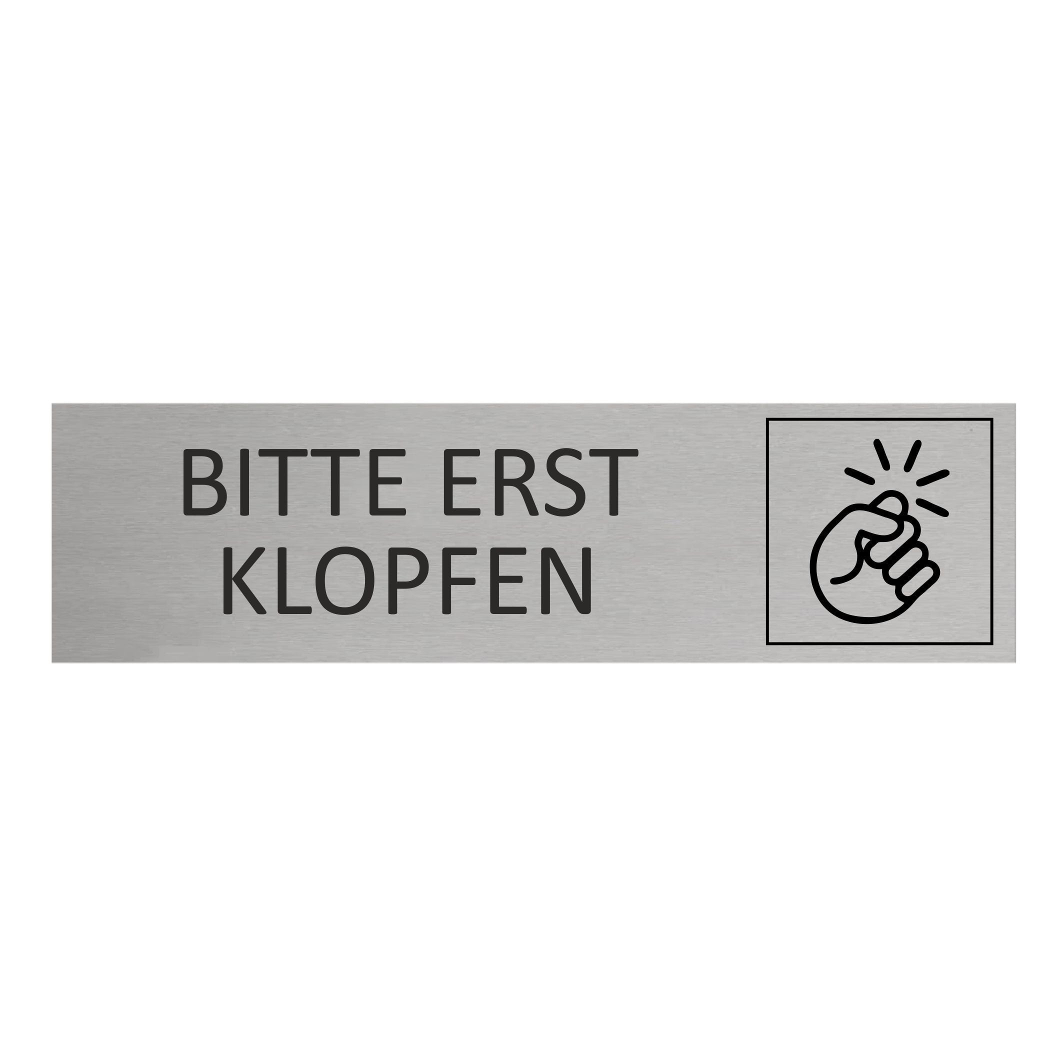 Aluminium Türschild Erst Klopfen 165x45mm mit 3M-Tape zur Befestigung, einfache Kennzeichnung von Räumen und Bereichen