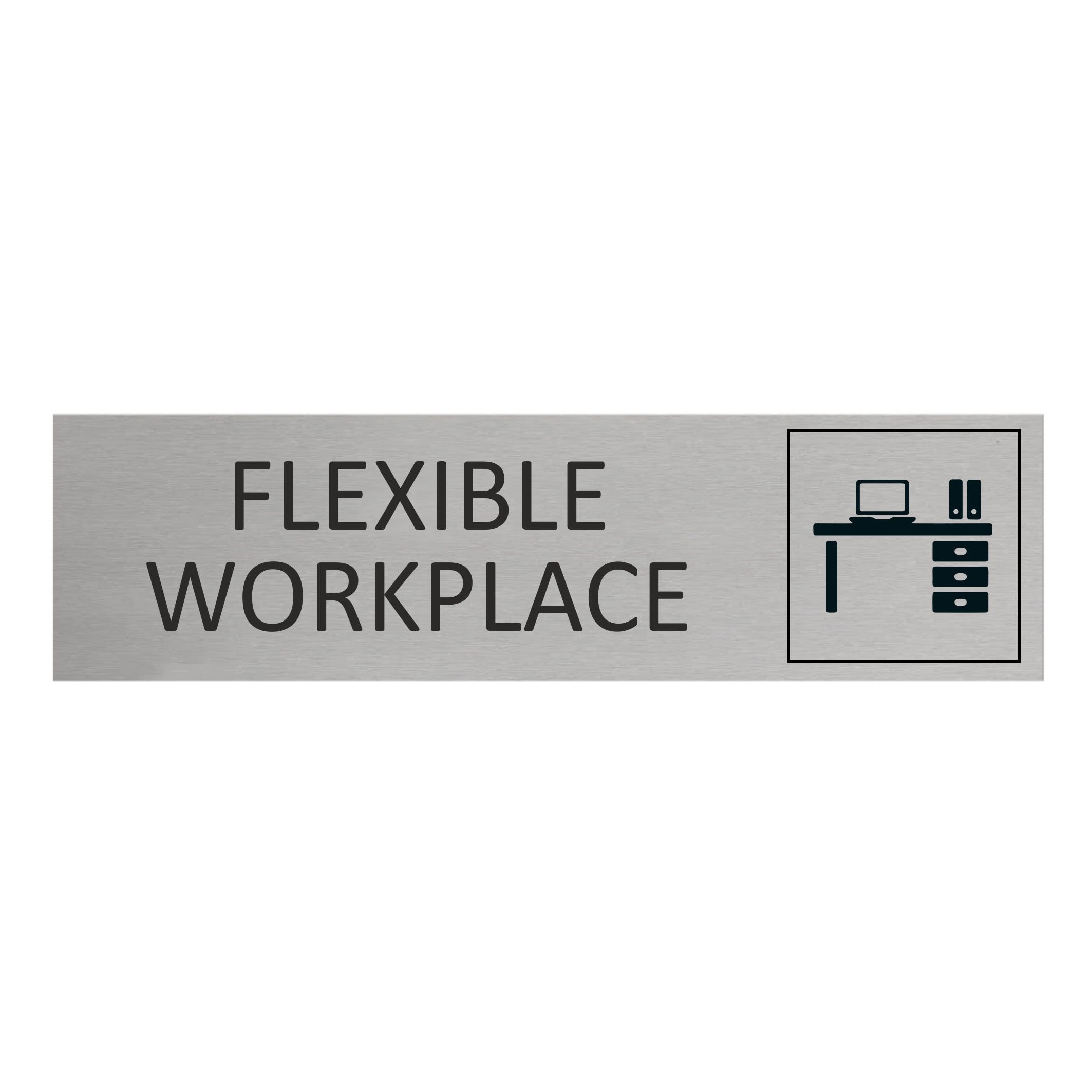 Aluminium Türschild Flexible Workspace 165x45mm mit 3M-Tape zur Befestigung, einfache Kennzeichnung von Räumen und Bereichen