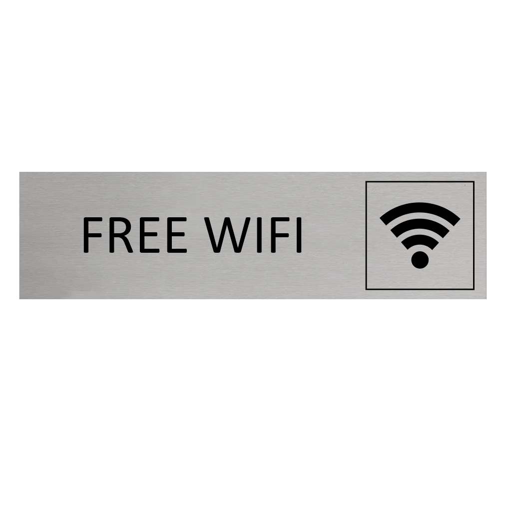 Aluminium Türschild Free Wi-Fi 165x45mm mit 3M-Tape zur Befestigung, einfache Kennzeichnung von Räumen und Bereichen