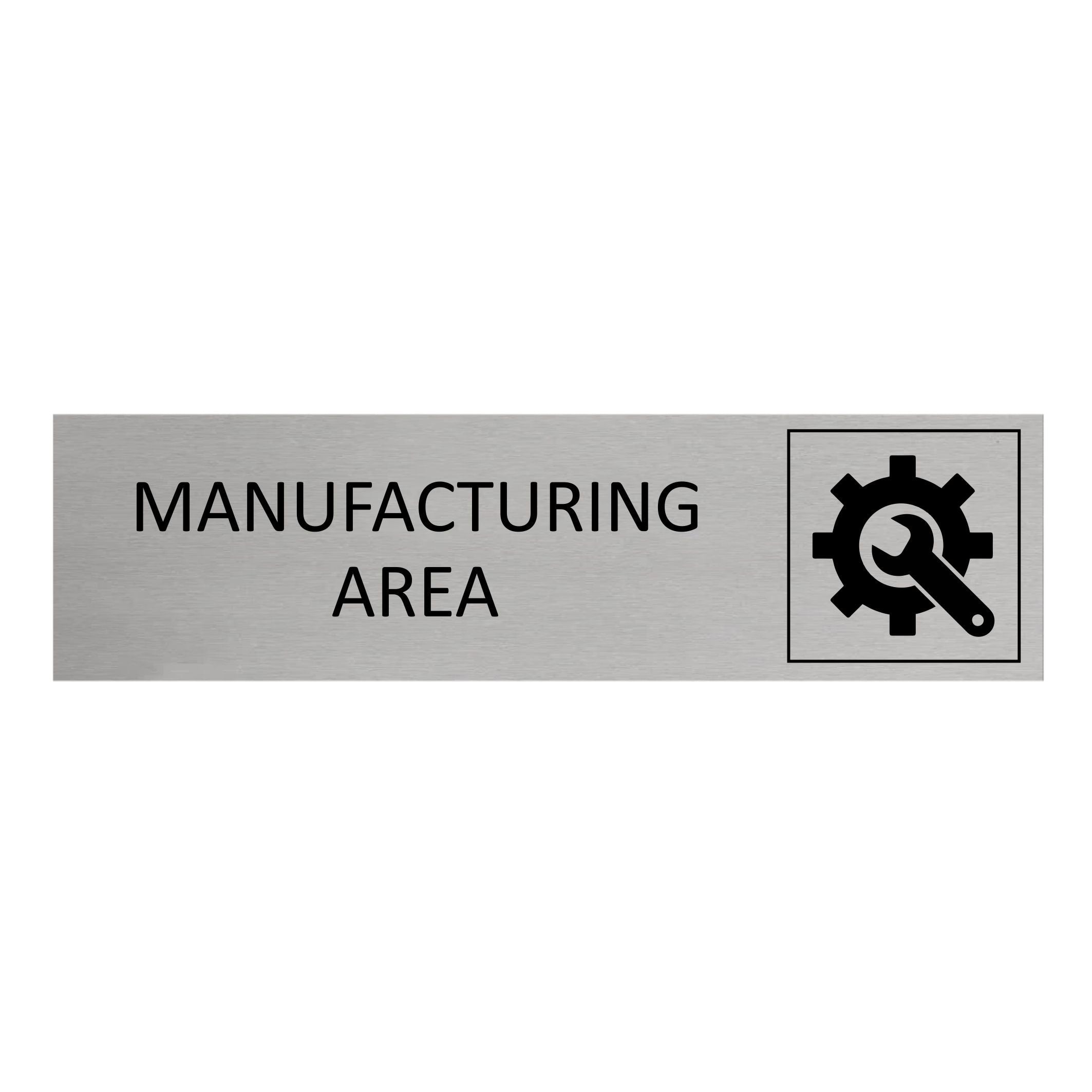 Aluminium Türschild Manufacturing Area 165x45mm mit 3M-Tape zur Befestigung, einfache Kennzeichnung von Räumen und Bereichen