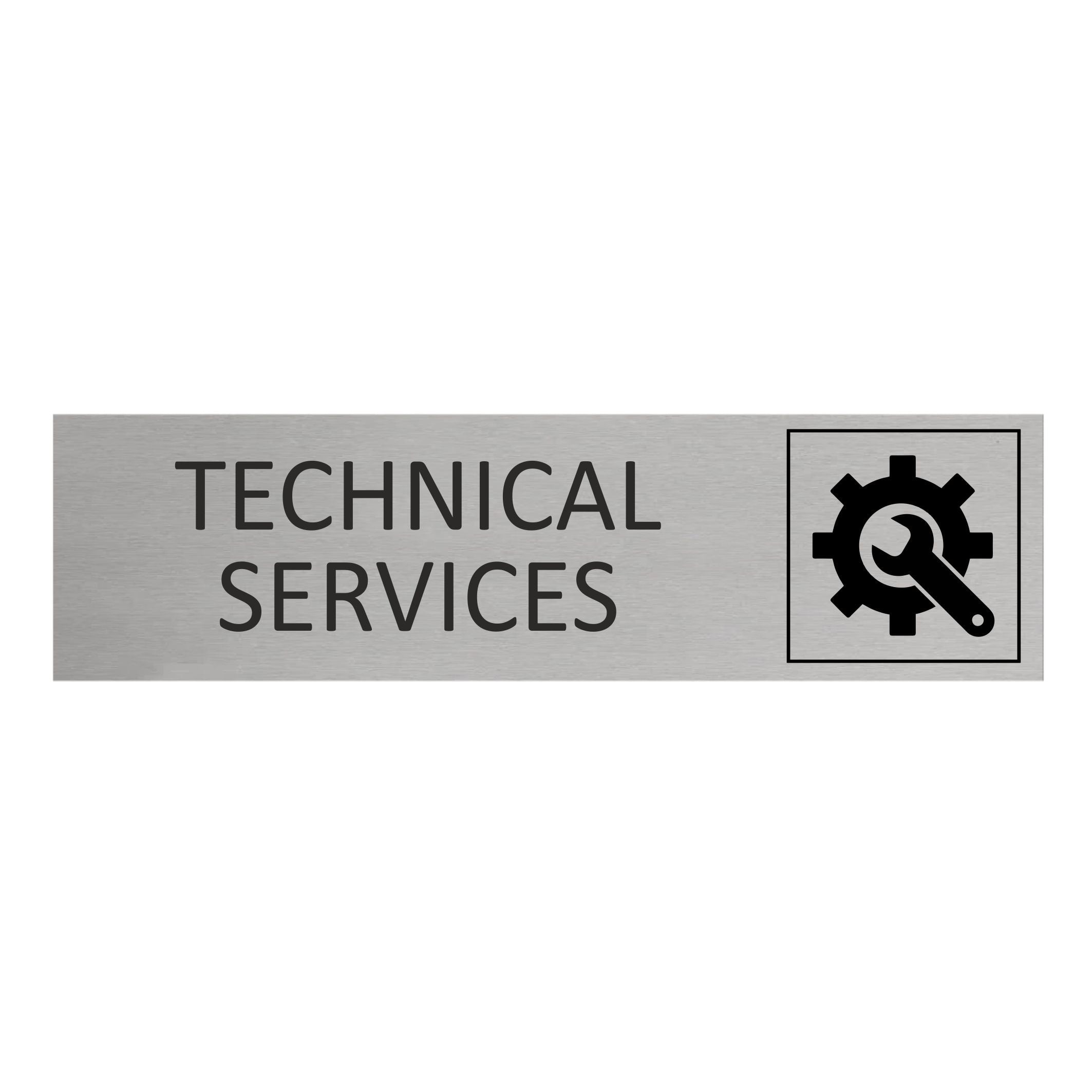 Aluminium Türschild Technical Services 165x45mm mit 3M-Tape zur Befestigung, einfache Kennzeichnung von Räumen und Bereichen