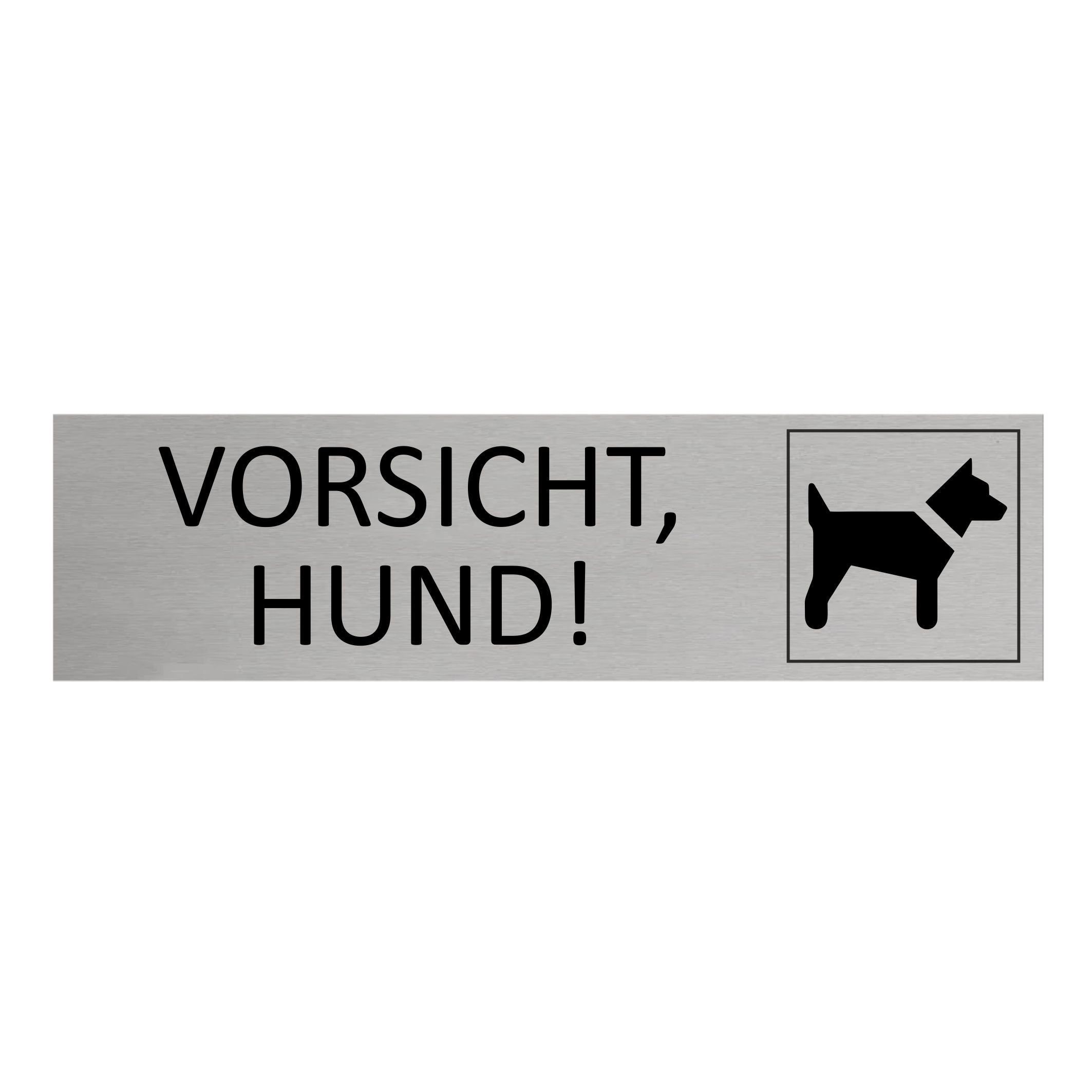 Aluminium Türschild Vorsicht, Hund! 165x45mm mit 3M-Tape zur Befestigung, einfache Kennzeichnung von Räumen und Bereichen