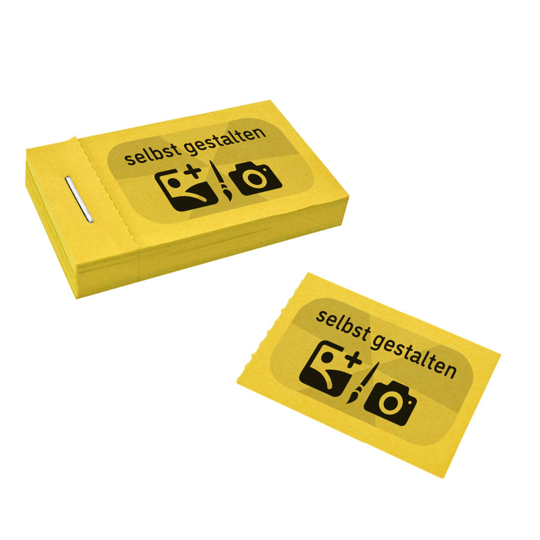 Gestalten Sie Ihre individuellen Eintrittskarten direkt online, indem Sie Ihr Wunschdesign hochladen. Sie erhalten handliche Eintrittstickets auf Papier – ideal für einmalige oder wiederkehrende Events. Dank Blockformat und Abrisskante sind die Tickets besonders leicht zu handhaben und stapelbar. Die Karten lassen sich sowohl als Zugangsnachweis als auch als Gutschein oder Kontrollticket nutzen. Durch die Möglichkeit des doppelseitigen Drucks können Sie zusätzlich Informationen, Hinweise oder Sponsorenlogos auf der Rückseite unterbringen.