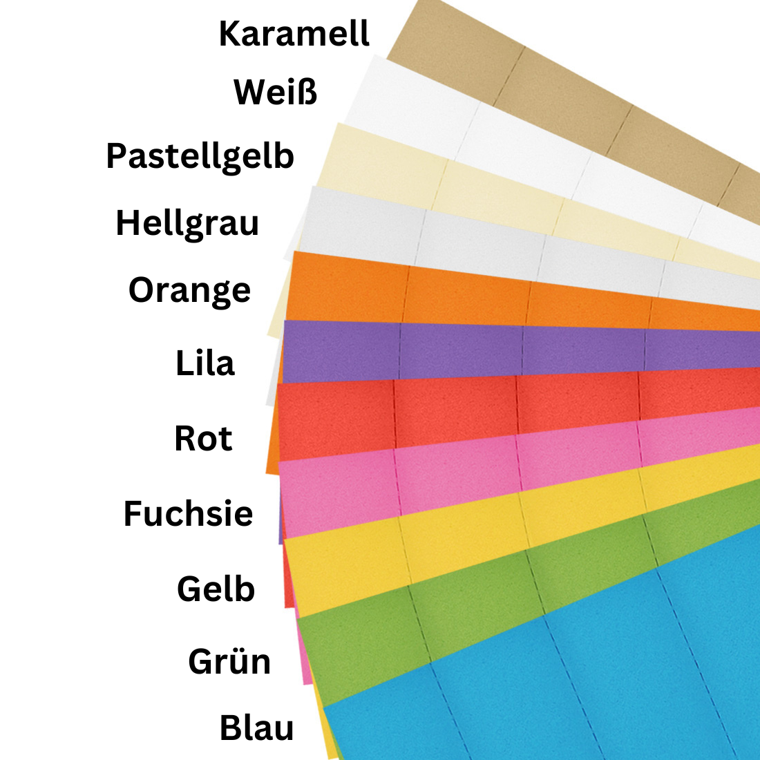 Jede Karte kann vollständig mit Ihrem eigenen Design gestaltet werden – egal ob Logo, Muster, Text oder andere grafische Elemente. Der Druck erfolgt einfarbig in Schwarz, wahlweise ein- oder doppelseitig, und sorgt für einen klaren, kontrastreichen Auftritt, der Ihre Veranstaltung optisch aufwertet.