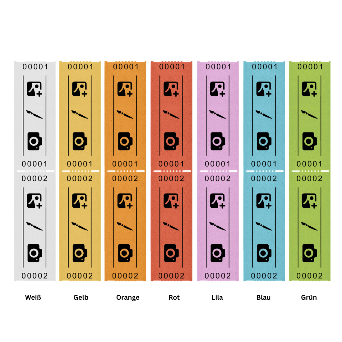 Diese Eintrittskarten auf Rolle vereinen Nachhaltigkeit, Funktionalität und Individualisierbarkeit. Sie eignen sich hervorragend für den Einsatz bei kulturellen Events, Sportveranstaltungen, Stadtfesten, Gastronomieaktionen oder anderen Events mit hohem Besucherandrang. Durch ihre stabile Qualität, einfache Handhabung und sichere Nummerierung bieten sie eine zuverlässige Lösung für Ihren Ticketverkauf oder Ihre Einlasskontrolle – Tag für Tag.