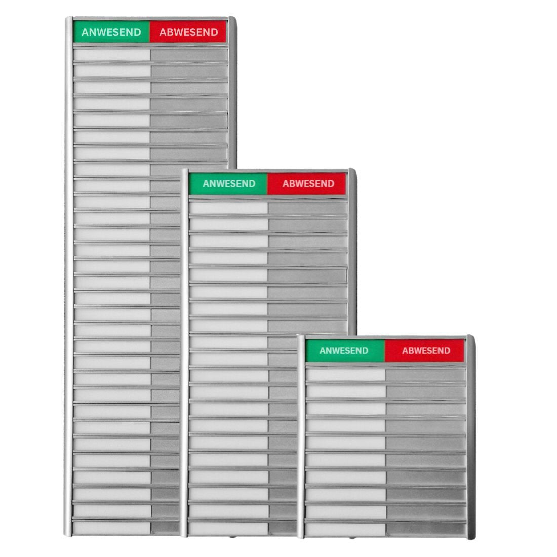Ersatzleisten aus Kunststoff für die Anwesenheitstafeln Professional und Business. Die weißen Namenleisten sind einzeln bestellt werden, ohne und mit Gravur. Jede Leiste ist 110 x 18 mm groß und hat gerade Ecken. Lesen Sie mehr