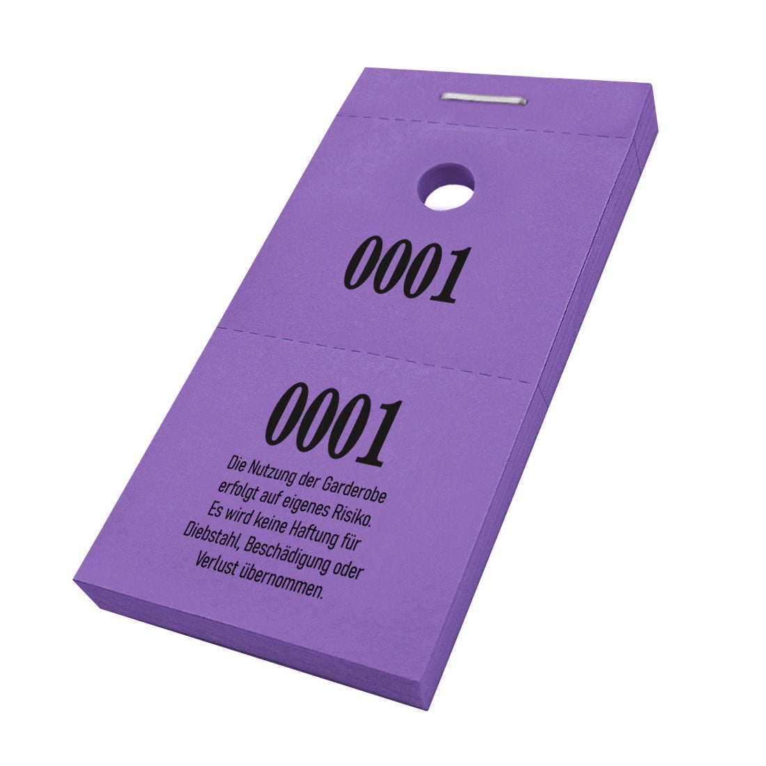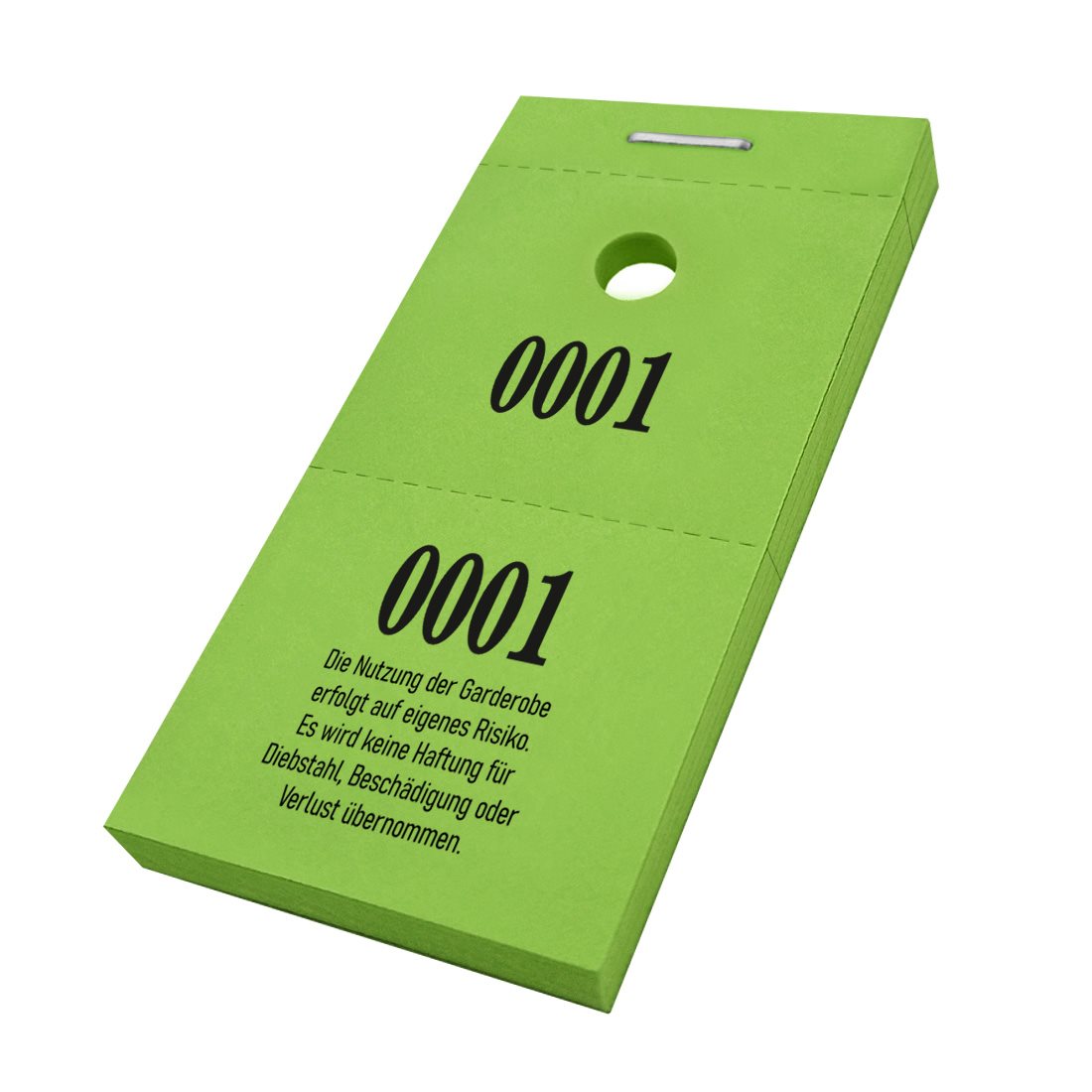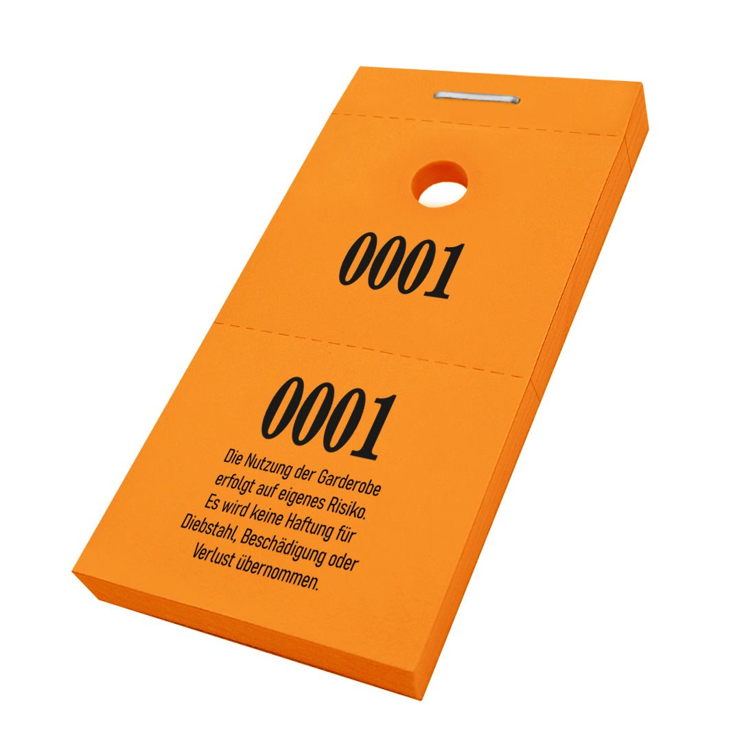 • Verkaufseinheit: 1000 Garderobenmarken, verteilt auf 20 Blöcke mit jeweils 50 Marken
