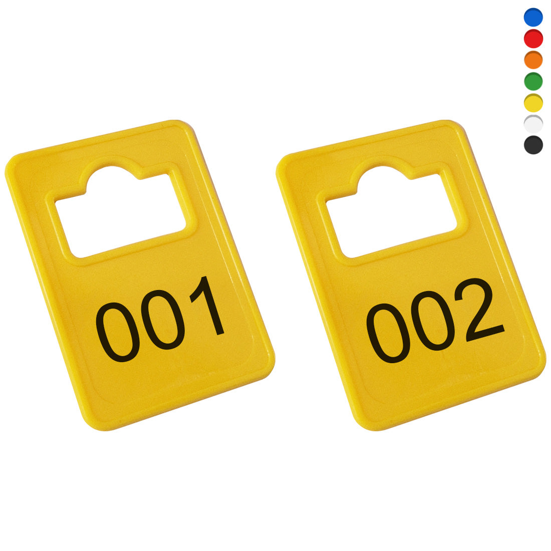 Die Tiffany Garderobenmarken sind hergestellt aus recyceltem Material und haben eine Nummerierung. Die rechteckigen Marken messen ca. 36 x 25 mm und verfügen an der breitesten Stelle über ein Aufhängeloch von ca. 21 x 14 mm. Erhältlich sind die Garderobemarken in verschiedenen Farben und Nummernsets.