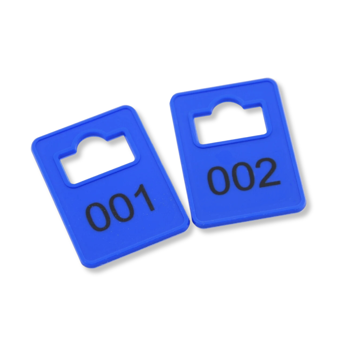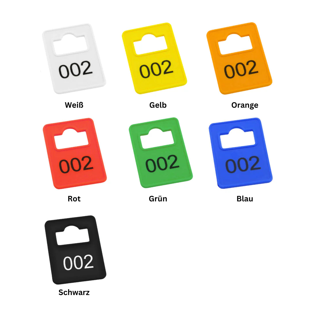 Die Tiffany Garderobenmarken sind hergestellt aus recyceltem Material und haben eine Nummerierung. Die rechteckigen Marken messen ca. 36 x 25 mm und verfügen an der breitesten Stelle über ein Aufhängeloch von ca. 21 x 14 mm. Erhältlich sind die Garderobemarken in verschiedenen Farben und Nummernsets. Lesen Sie mehr