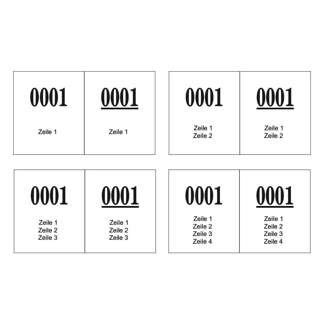 Nummerierung: fortlaufend nummeriert ab 0001, individuelle Nummerierung möglich