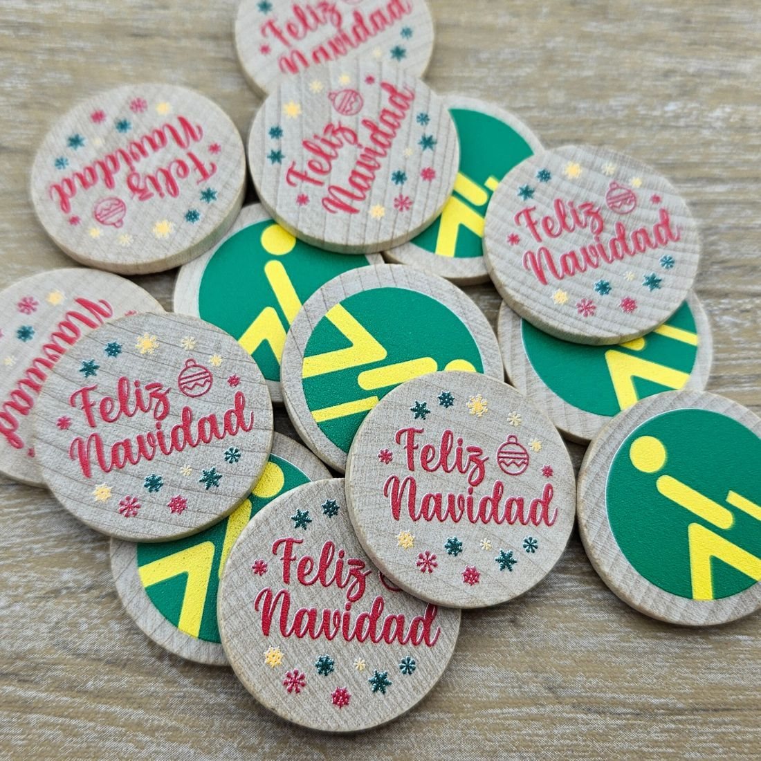 Sie haben die Möglichkeit, die Holzmarken ganz nach Ihren Wünschen zu gestalten – einseitig oder beidseitig, mit identischem oder unterschiedlichen Designs auf jeder Seite. Ob Logo, Text oder Bild, Ihr individuelles Motiv wird mit präzisem Vollfarb-Druck aufgebracht.