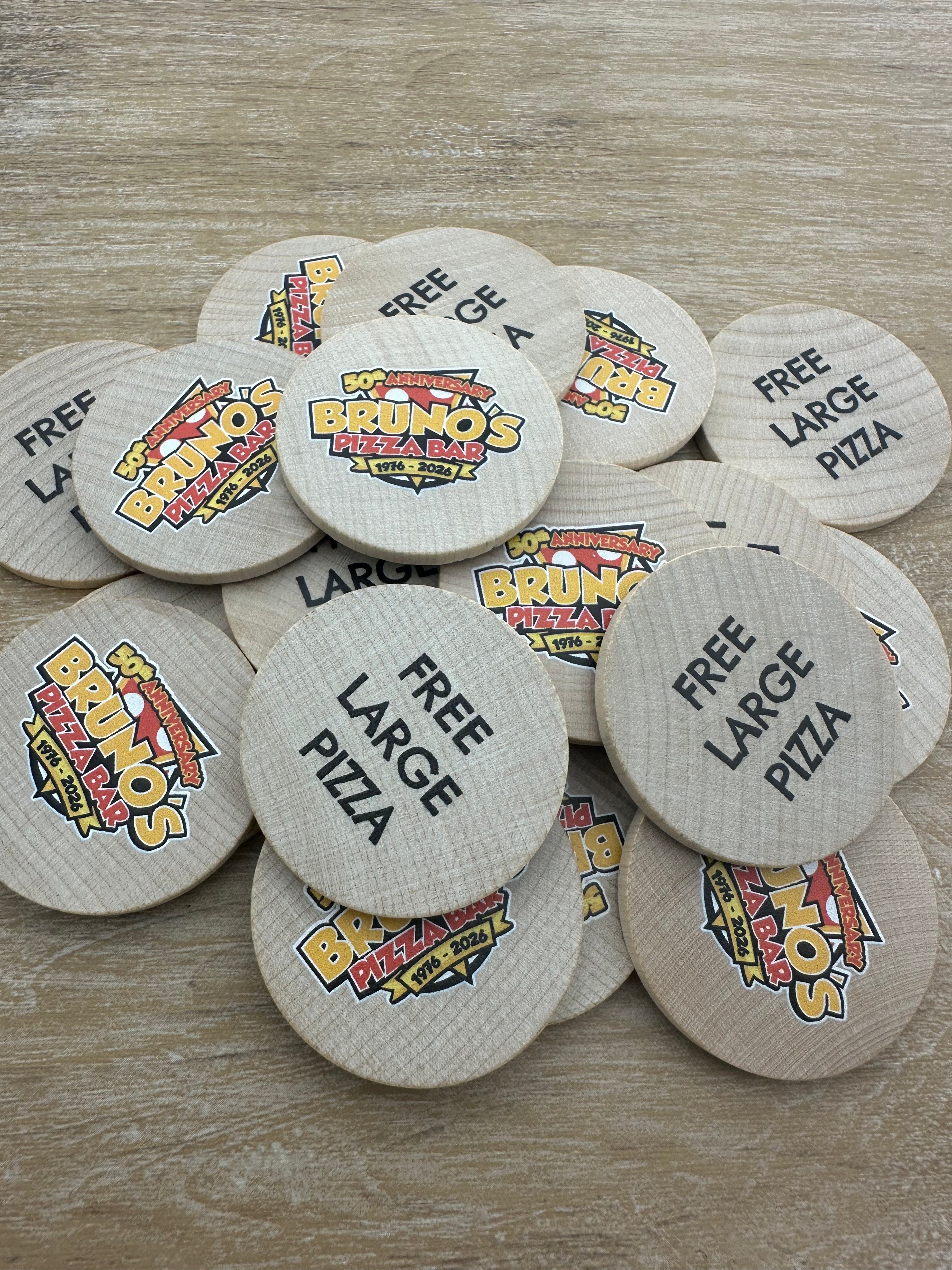 Die Holz Wertmarken bestehen aus 100 % echtem Ahornholz und sind mit einer dünnen, transparenten Lackierung versehen. Diese sorgt für eine glatte, wasserabweisende Oberfläche und erhält gleichzeitig die natürliche Optik des Holzes. Dank individueller Gestaltungsmöglichkeiten können die Holzmarken ein- oder beidseitig mit Ihrem Logo, Text oder Motiv bedruckt oder graviert werden – perfekt für Gastronomie, Festivals, Events, Messen und Vereine!