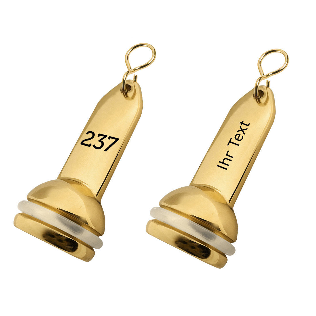 Der Capital-Hotelschlüsselanhänger aus glänzendem Messing besticht durch Luxus und Eleganz. Mit den Maßen 40 × 90 mm, 5 mm Dicke und 250 g Gewicht liegt er schwer in der Hand. Ausgestattet mit goldfarbenem Schlüsselring und Gummiring schützt er vor Beschädigungen und kann individuell mit Nummer, Text oder Logo graviert werden. Pro Stück zu bestellen.
