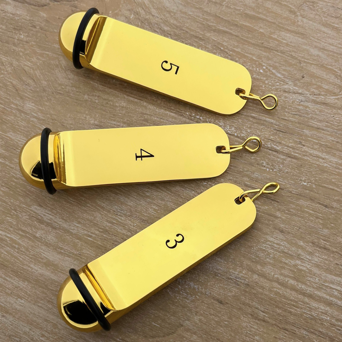 Hotel Schlüsselanhänger Classico goldfarben, 29x108 mm mit eigener Gravierung - pro Stück