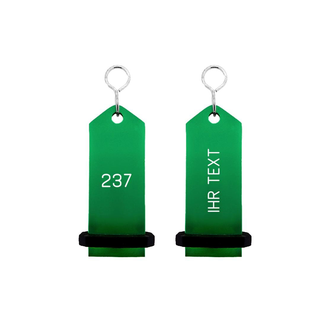 Der dezente Kontrast zwischen dem grünen Aluminium und der Gravur sorgt für eine edle, gut lesbare Optik – ideal für den täglichen Einsatz in Ihrer Unterkunft.