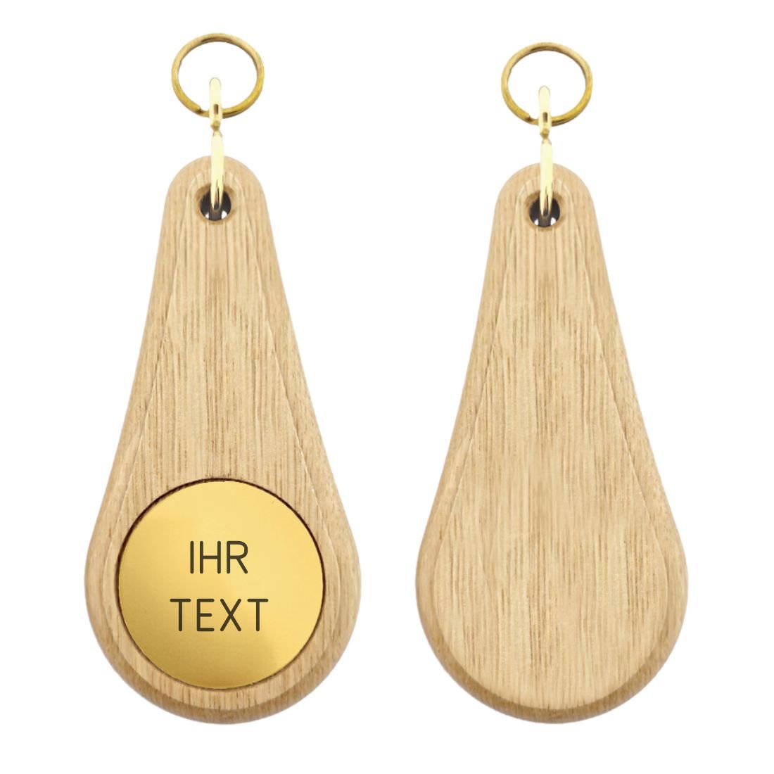 Alternativ ist der Oaky Drop auch in einer Variante mit zwei Gravurplatten erhältlich – so können Vorder- und Rückseite graviert werden, z. B. mit Logo und Zimmernummer.
