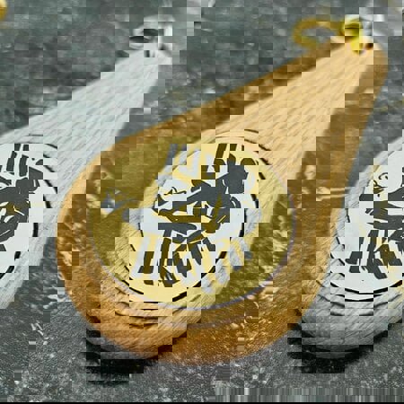 Gefertigt aus massivem Eichenholz misst der Schlüsselanhänger 110 × 55 mm. Die feine Holzmaserung unterstreicht den natürlichen Charakter und macht jedes Exemplar einzigartig. Mit einem Gewicht von 40 g liegt der Oaky Drop angenehm in der Hand und vermittelt sofort Wertigkeit. Die Befestigung erfolgt über einen geraden S-Haken in edlem Goldton, an dem ein stabiler Schlüsselring mit Ø 24 mm angebracht ist. Diese Kombination garantiert sicheren Halt und eine langlebige Nutzung im Alltag. Neben der hellen Variante ist der Oaky Drop auch in Dunkelbraun erhältlich.