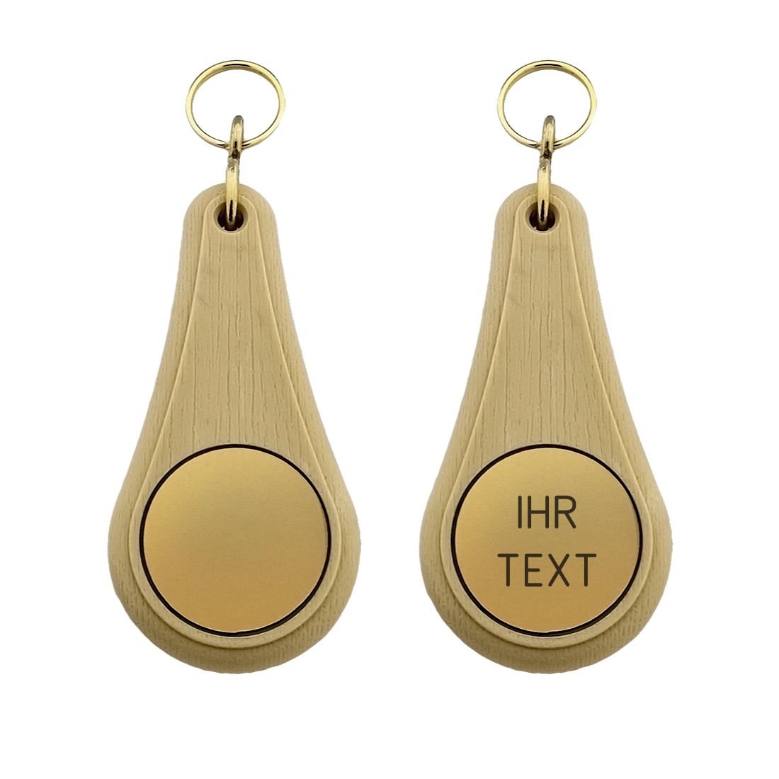Für eine besonders luxuriöse Variante bieten wir den Wellness-Schlüsselanhänger auch aus massivem Eichenholz an – den Oaky Drop. Er verbindet skandinavisches Design mit der natürlichen Optik von Holz und bietet ebenfalls ausreichend Fläche für individuelle Gravuren.