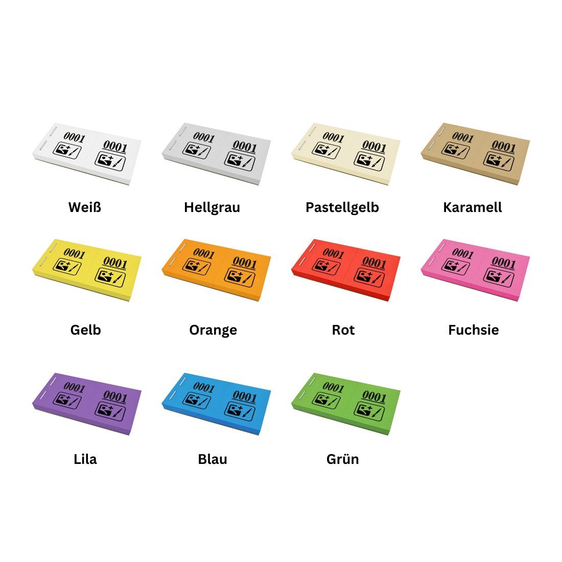 Nummerierte Losblöcke mit individuellem Logodruck – ideal für Tombola, Bingo und Gewinnspiele. 1.000 Doppelnummern auf 20 Blöcke verteilt, im Format 105 × 55,8 mm. Aus stabilem 120 g/m² Papier, mit beidseitiger Perforation für schnelles Abreißen und fortlaufender Nummerierung. Lesen Sie mehr