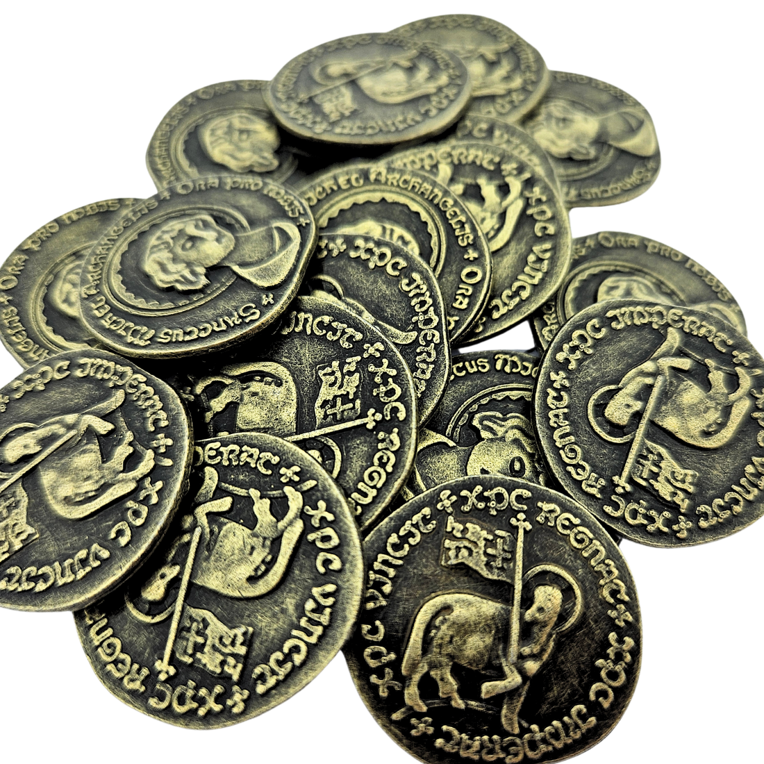 Tauchen Sie ein in die faszinierende Welt des Mittelalters mit den hochwertigen mittelalterlichen Münz-Nachbildung von CombiCraft. Diese Münzen sind aus langlebiger Gussbronze gefertigt und mit einem goldenen Farbton veredelt, der ihnen eine außergewöhnliche Ästhetik verleiht. Mit einem Durchmesser von ca. 24 mm und einem detaillierten Relief sind diese Repliken eine Darstellung mittelalterlicher Handwerkskunst. Der charakteristische ungerade Rand verleiht ihnen eine authentische Note, die jede Veranstaltung in eine Zeitreise verwandelt. Ein fast unverzichtbares Accessoire für Mittelalterfeste, Theaterstücke oder archäologische Events.