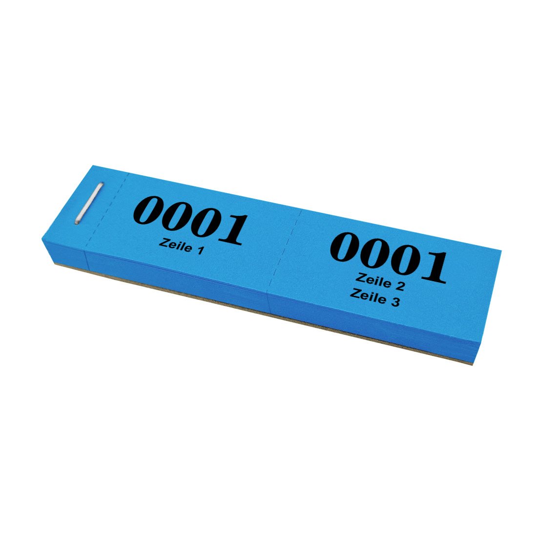 Nummernblocks mit 2.000 Doppelnummern auf 40 Blöcken (105×27,9 mm), aus robustem 120 g/m² Papier. Mit praktischer Perforation für einfache Trennung. Individuell personalisierbar mit bis zu 3 Textzeilen. Fortlaufend nummeriert, ideal für Lotterien, Bingo & Tombolas.
