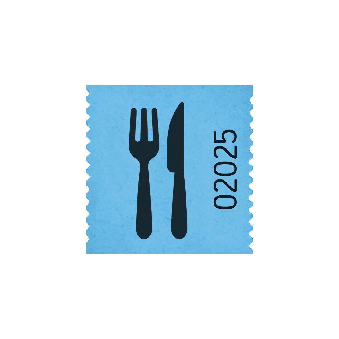 Wertmarken auf Rolle mit Besteck Motiv in der Farbe Blau. Im Format 30x30 mm mit 500 Stück Wertmarken pro Rolle. Jeder Bon ist eindeutig nummeriert und auf beiden Seiten gut perforiert, sodass er leicht abzureißen ist. Ideal für kleine Veranstaltungen und Partys.