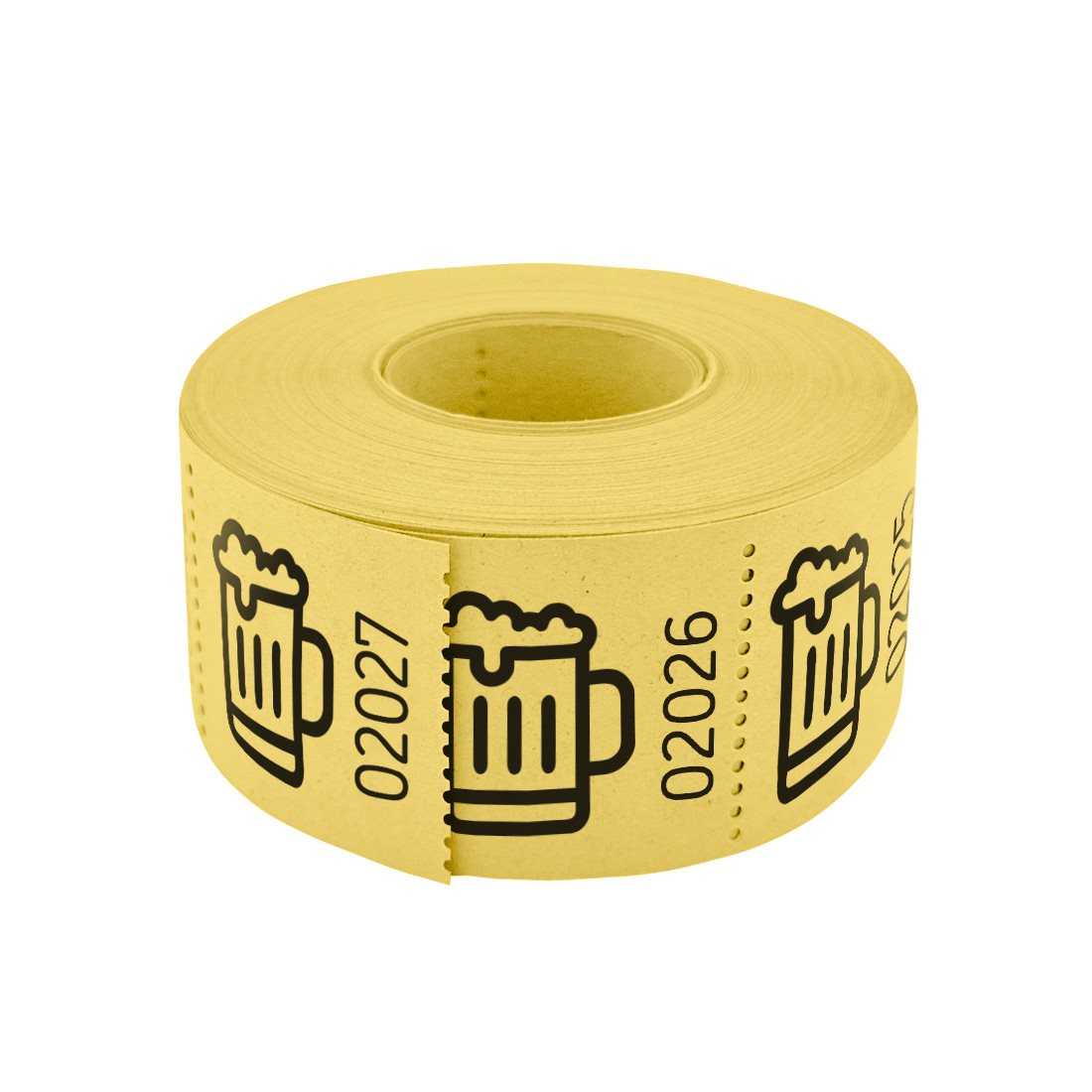 Wertmarken auf Rolle mit Bierkrug-Motiv, 30x30 mm, 500 Abrisse , Gelb - pro Rolle