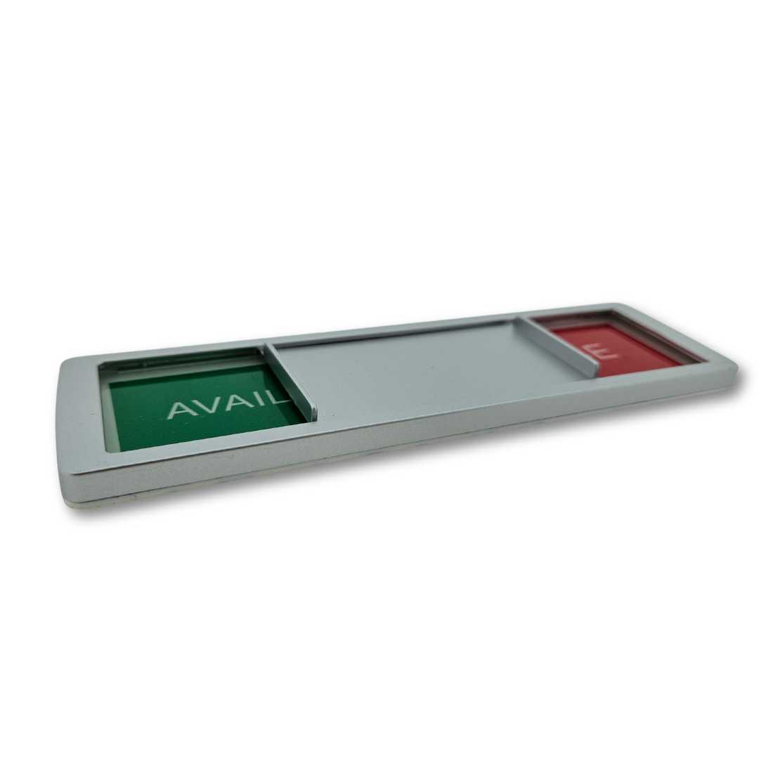 Schild „Available-In Use“ in einem silbernen oder schwarzen Kunststoff-Schiebeprofil ca. 178x50mm - pro Stück