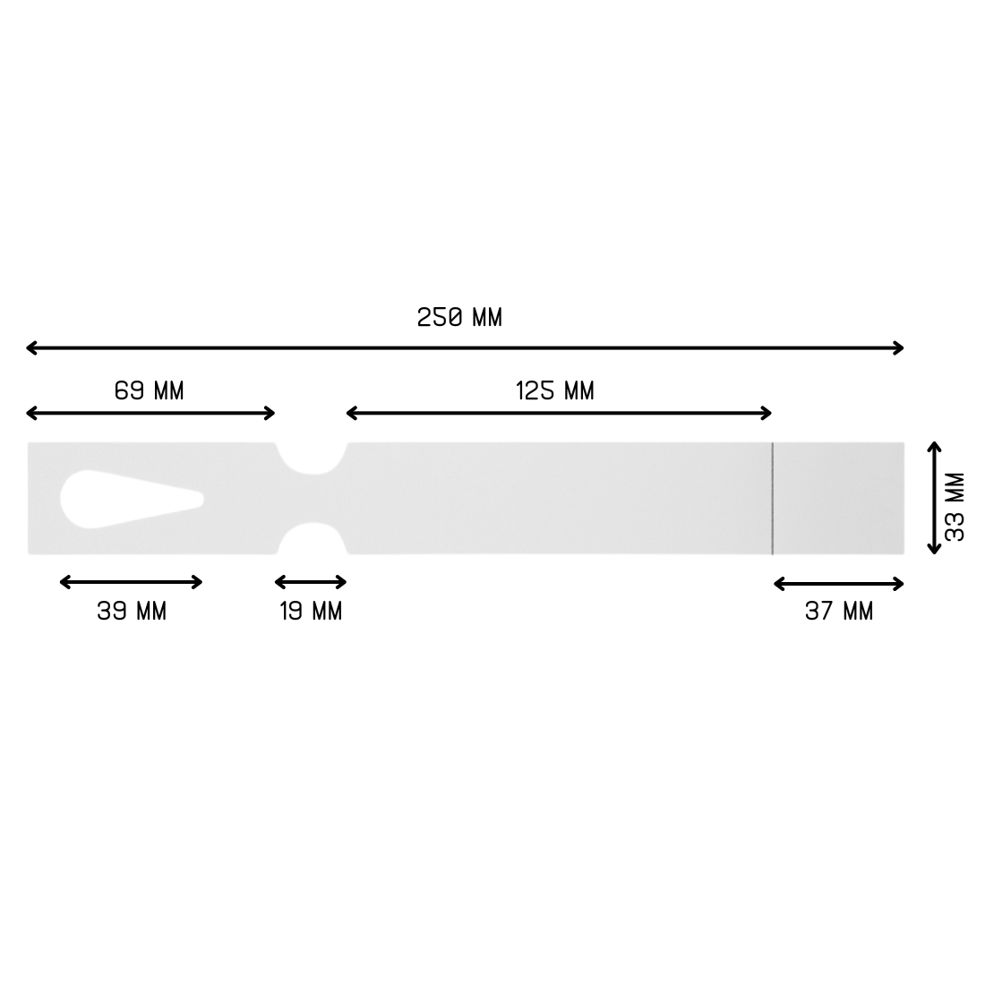 • Maße: Etikett 250 x 33 mm | Schlaufe Ø 22,3 mm
