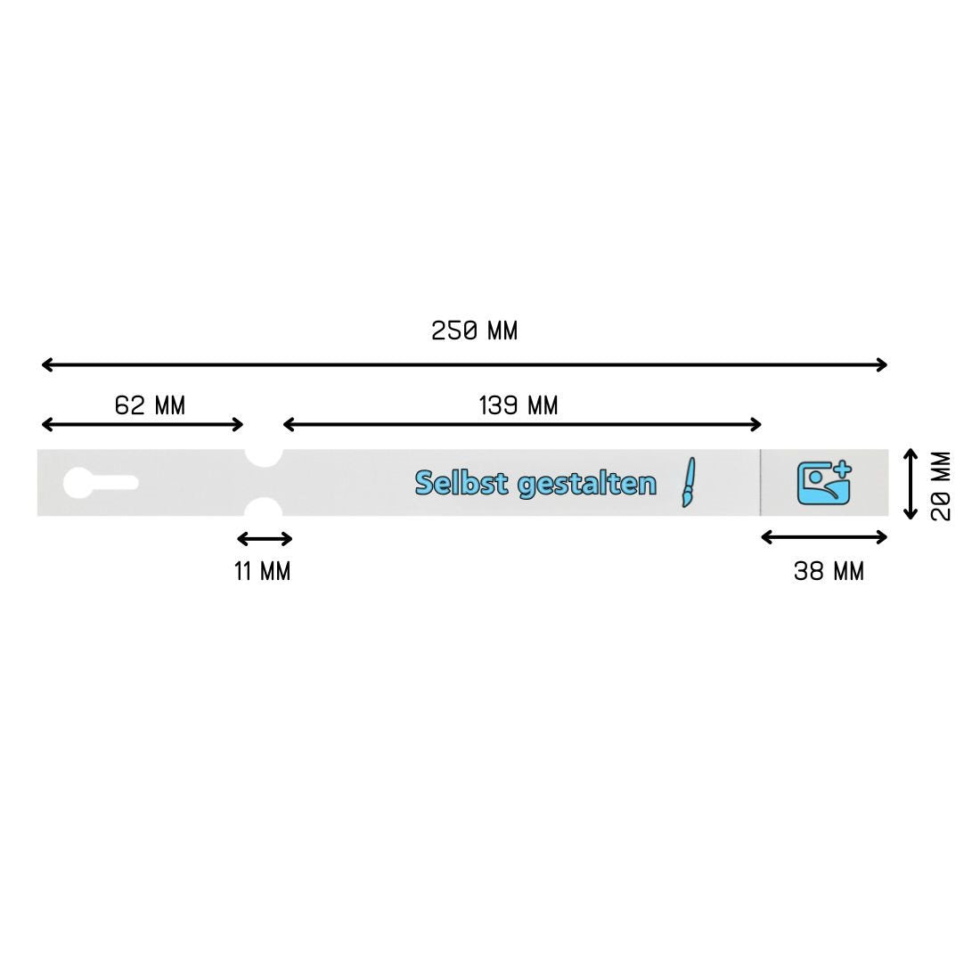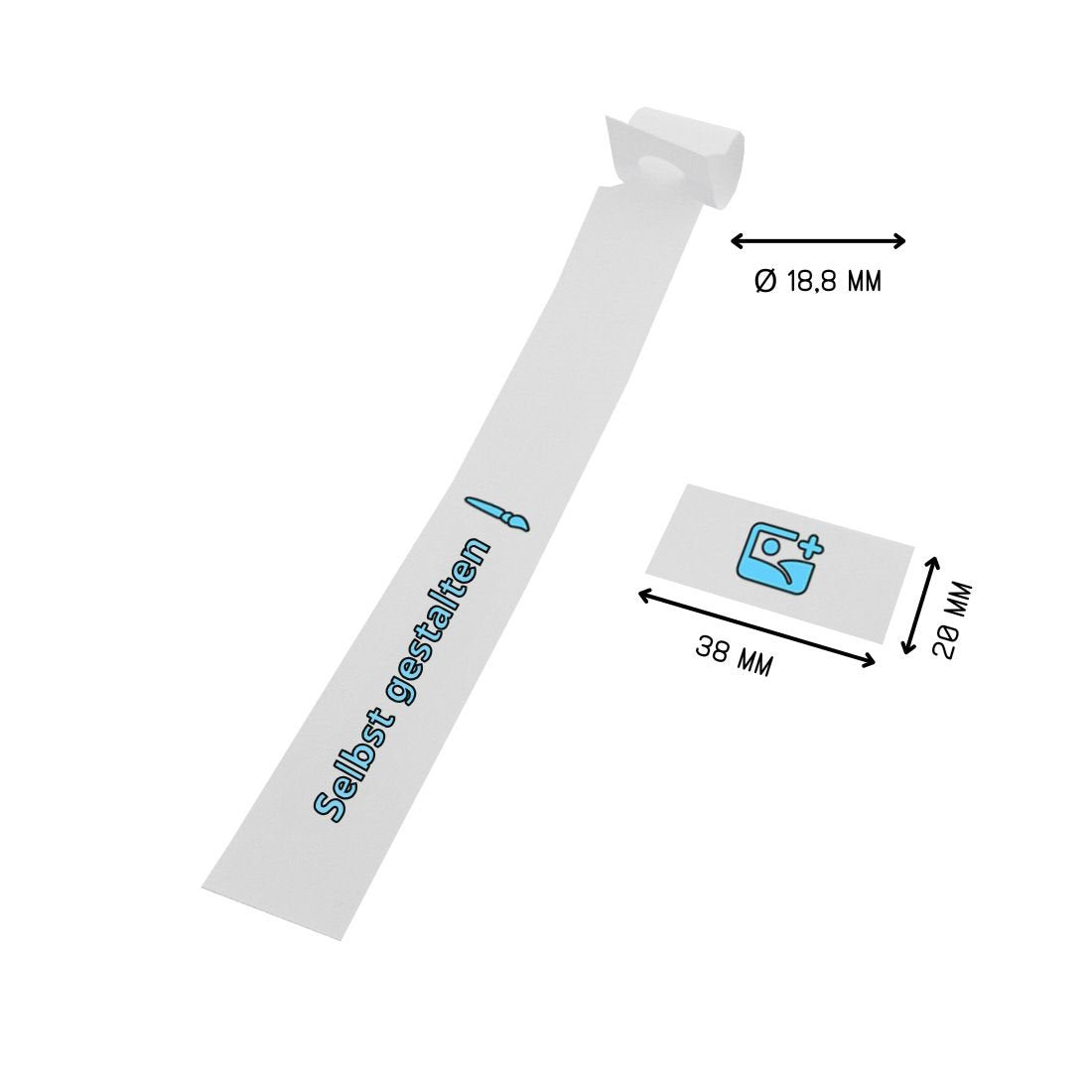 Maße: Etikett 250x20 mm | Schlaufe Ø 18,8 mm