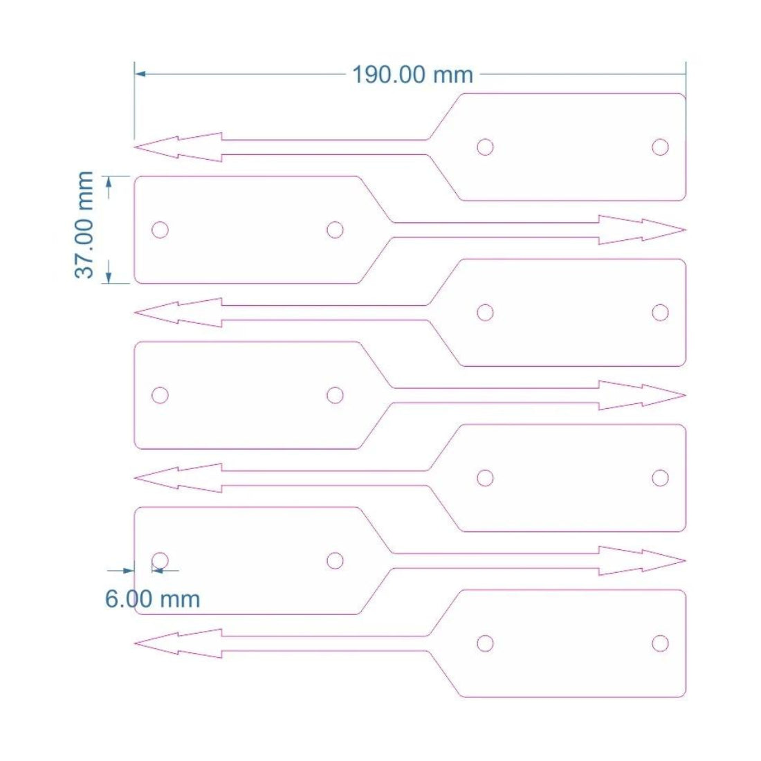 Die Schlüssel-Tags im Format 190 x 37 mm sind ideal zur Kennzeichnung von Autoschlüsseln und Werkstattutensilien. Hergestellt aus hochwertigem HDPE (200 Mikron) bieten sie lange Haltbarkeit und Widerstandsfähigkeit. Mit 500 Etiketten auf 50 A4-Blättern lassen sie sich mit Kugelschreiber, wasserfestem Stift oder einem Thermotransferdrucker beschriften. Perfekt für Werkstätten und Autohäuser.