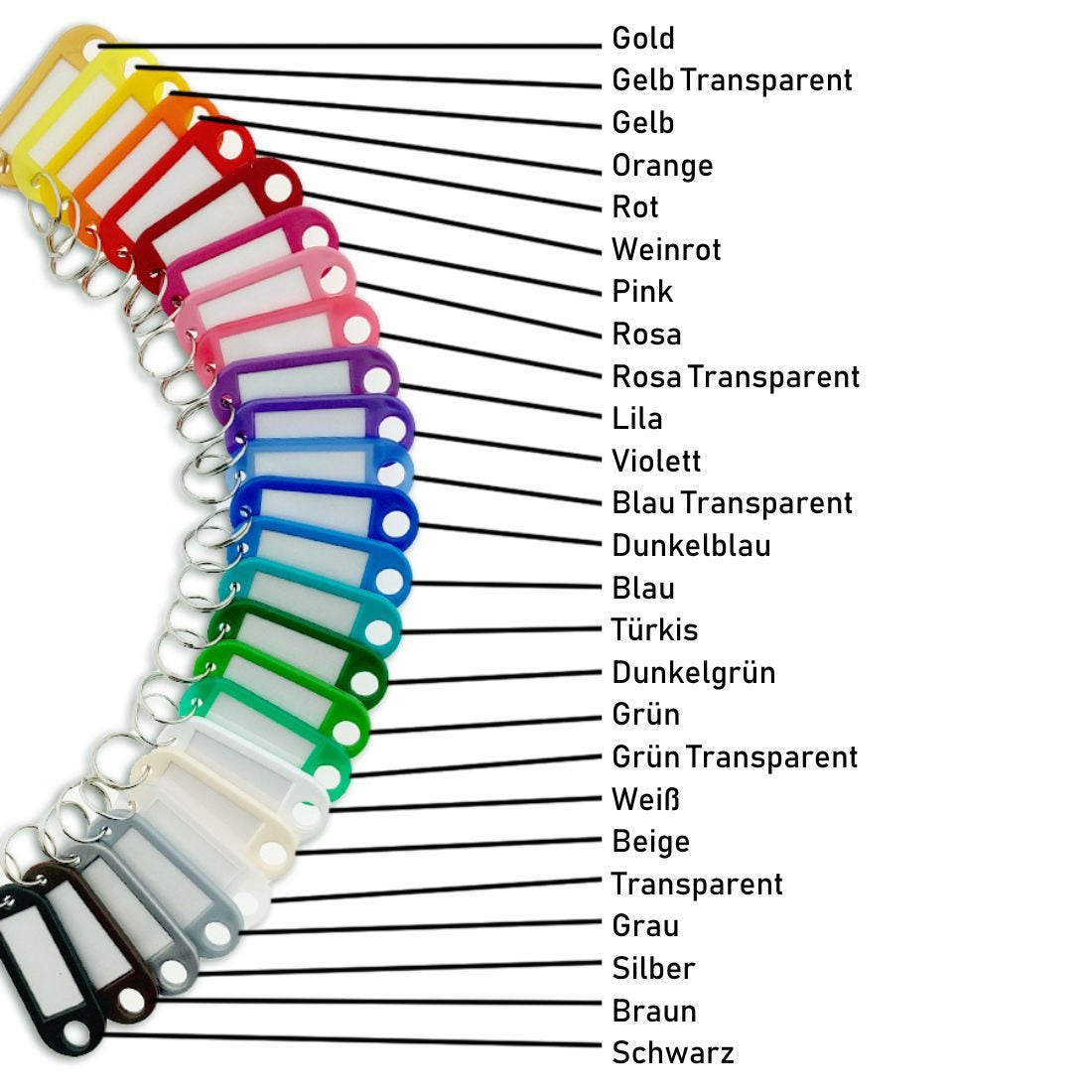 Schlüsseletiketten 55 x 22 mm mit Schlüsselring im praktischen Farbenmix, einfach zu beschriften - pro 50 Stück