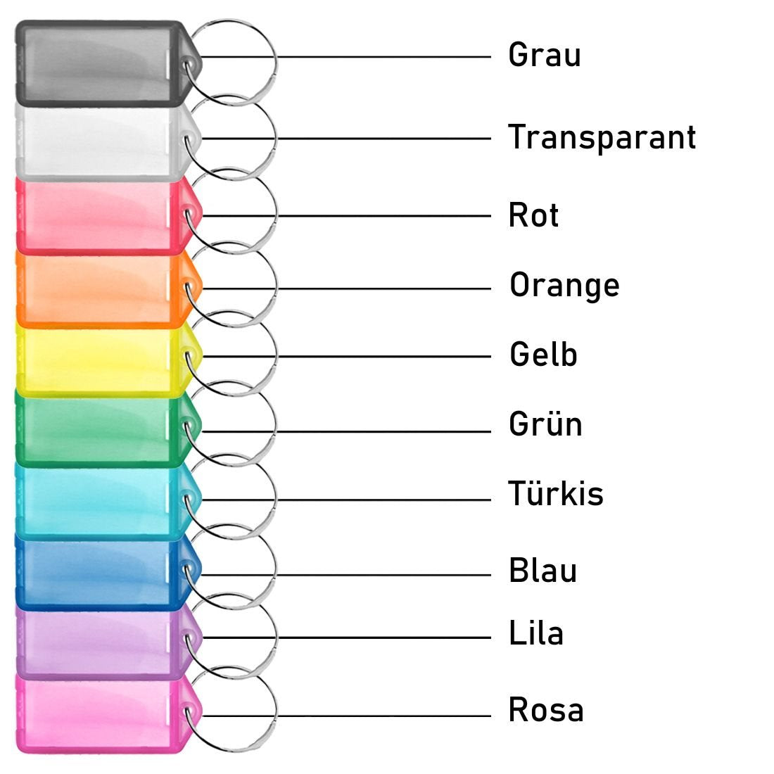 Die aufklappbaren Schlüsseletiketten bieten eine einfache Lösung zur Organisation Ihrer Schlüssel. Mit einer Größe von 60 x 27 mm und einer Dicke von 5 mm sind sie robust und mit einem transparenten Fenster ausgestattet, das den beidseitig beschreibbaren Papierstreifen schützt. Dank der praktischen Handhabung müssen Sie den Schlüsselring nicht entfernen, um die Etiketten zu beschriften. Erhältlich in verschiedenen Farben und ideal für den Einsatz zu Hause oder im Büro. Lesen Sie mehr