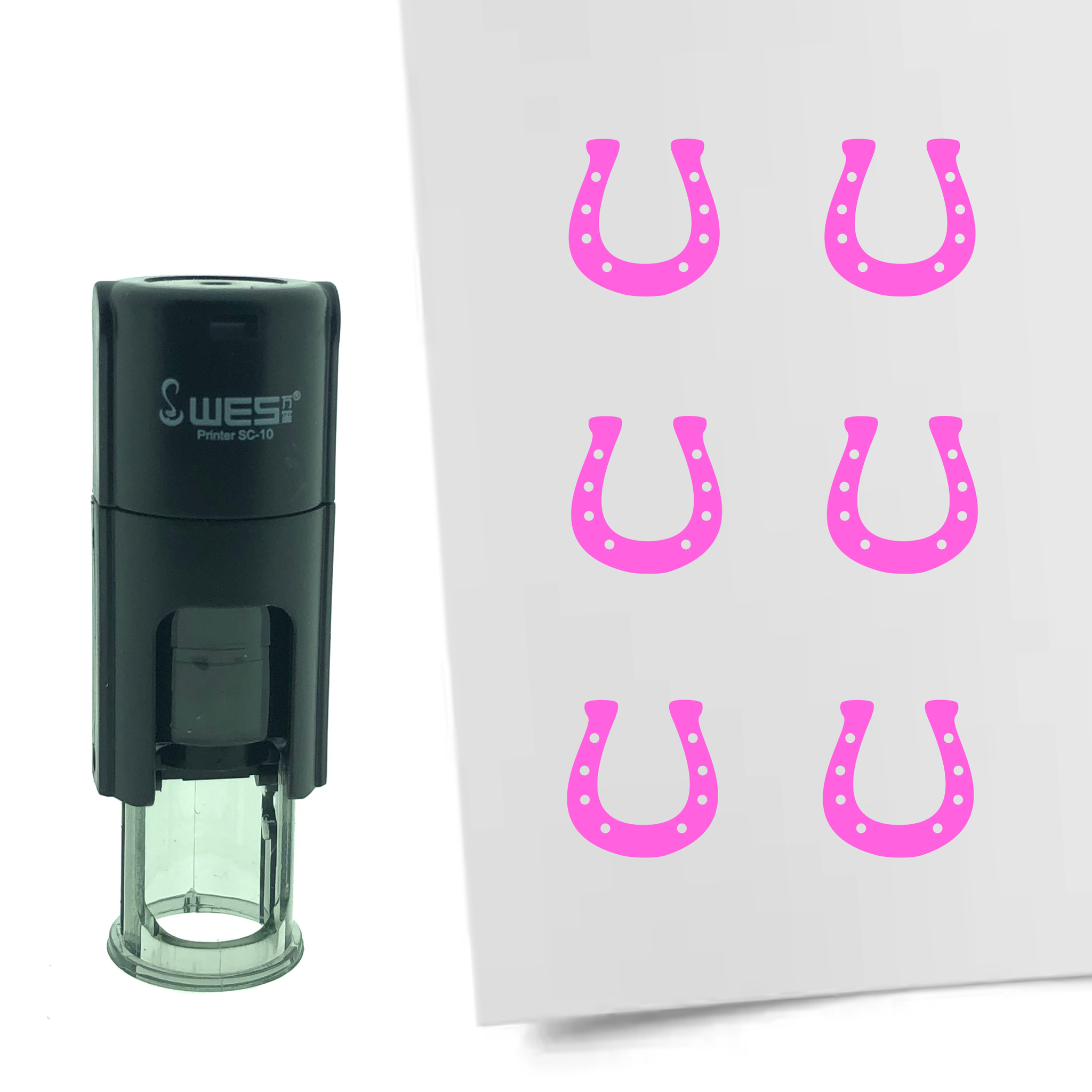 Selbstfärbender Stempel mit Hufeisen, Ø10mm Druckfläche, in verschiedenen Farben - pro Stück