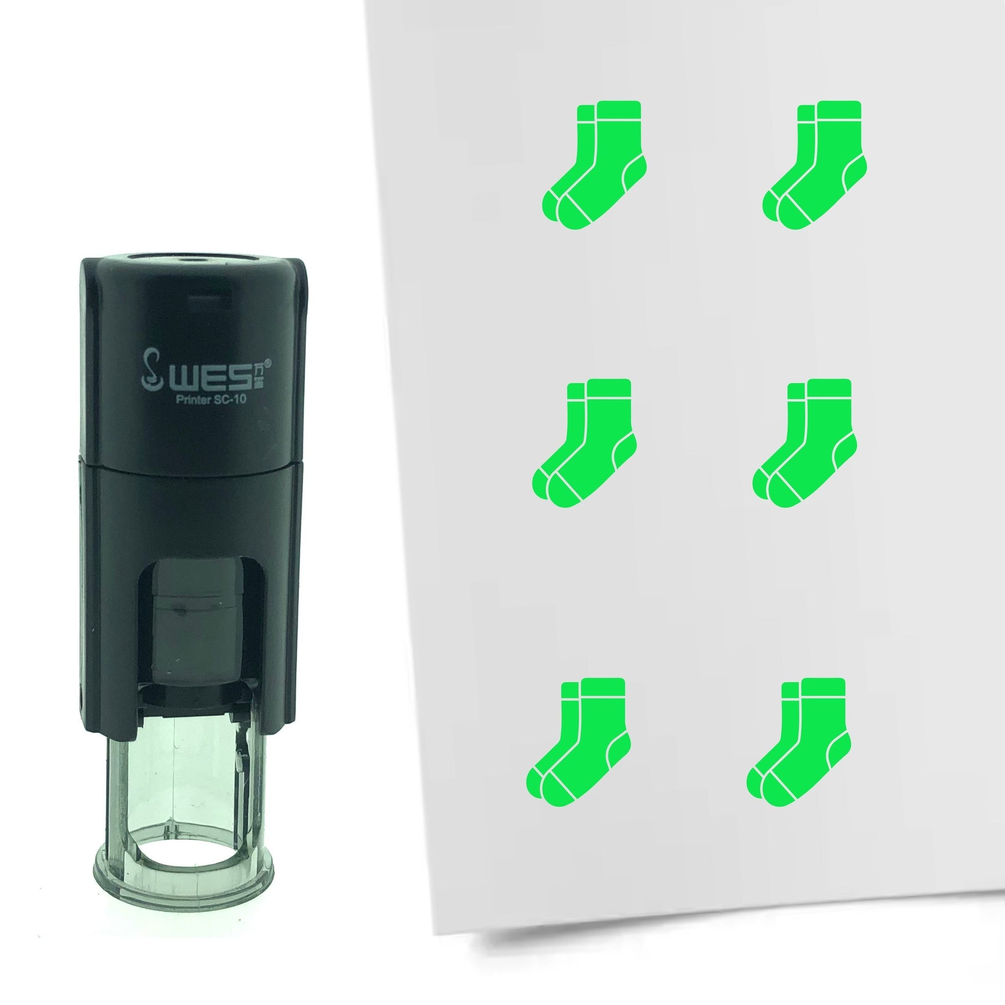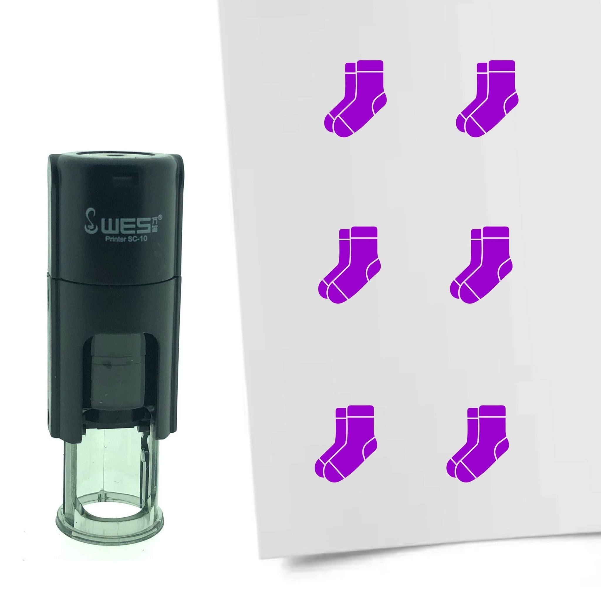 Erleben Sie den praktischen und langlebigen Selbstfärbestempel mit trendigem 'Socke'-Motiv, der ideal für Treue- und Bonuskarten, Bullet Journals, Kalender, Visitenkarten und kreative Projekte geeignet ist. Der Stempel bietet eine präzise Druckfläche von Ø10 mm und ist sofort einsatzbereit dank integriertem Stempelkissen.