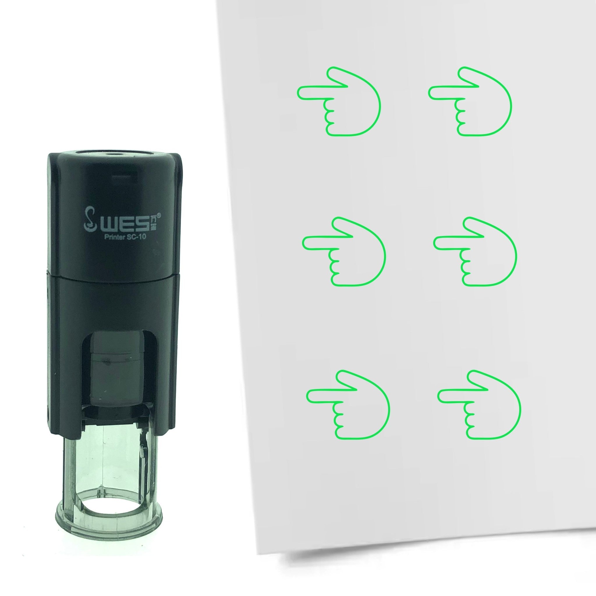 Der selbstfärbende Stempel mit 'Zeigefinger nach Links'-Motiv ist perfekt für Treuekarten, Bullet Journals und kreative Projekte.Mit einer Druckfläche von Ø10 mm, Abmessungen von 65 x 20 x 20 mm und integriertem Stempelkissen ist er sofort einsatzbereit. Der nachfüllbare Stempel ist leicht und kompakt – perfekt für unterwegs. Bestellen Sie den Stempel in verschiedenen Farben und verleihen Sie Ihren Projekten einen kreativen Akzent!