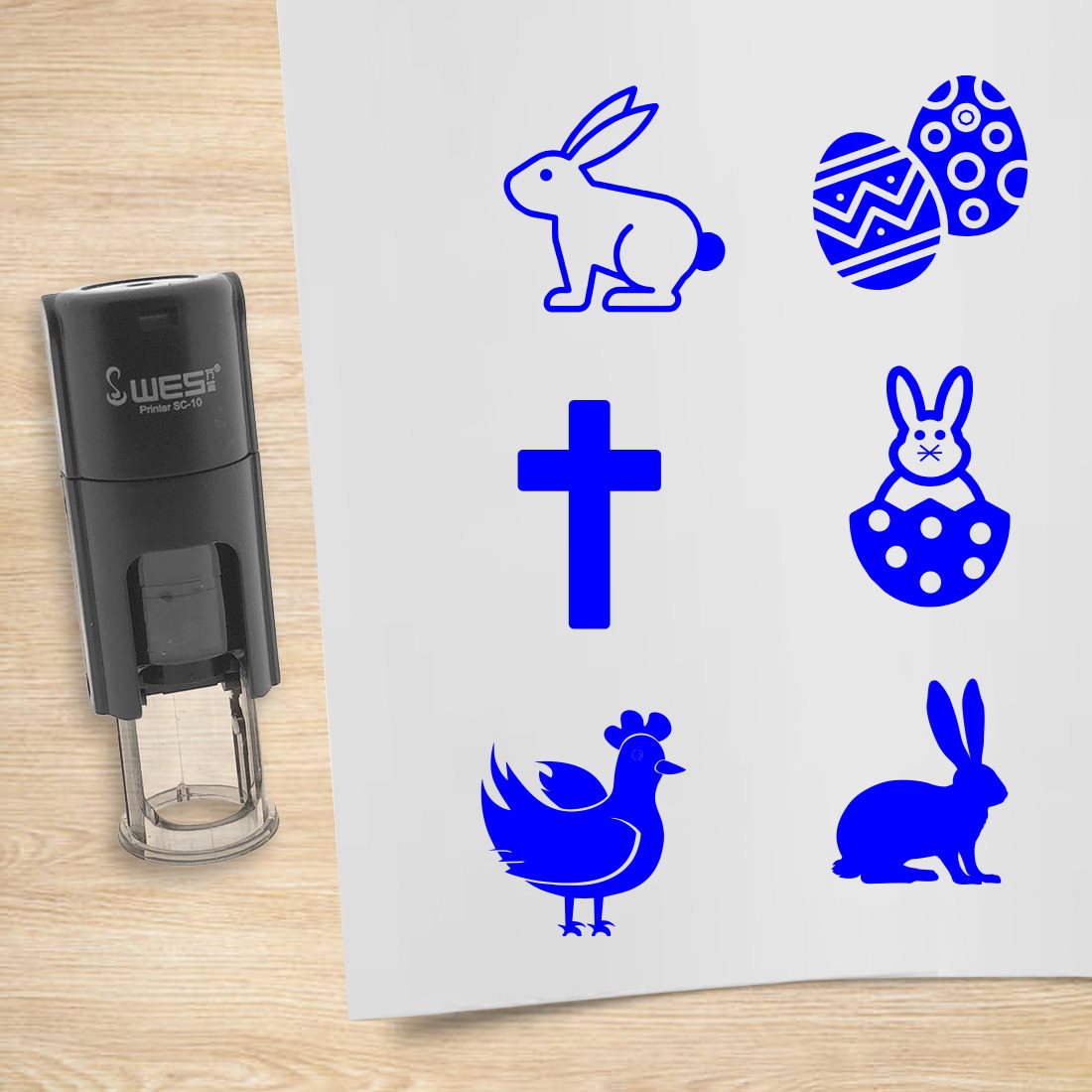Set selbstfärbender Stempel mit Ostern, Ø10mm Druckfläche, in verschiedenen Farben - pro Stück