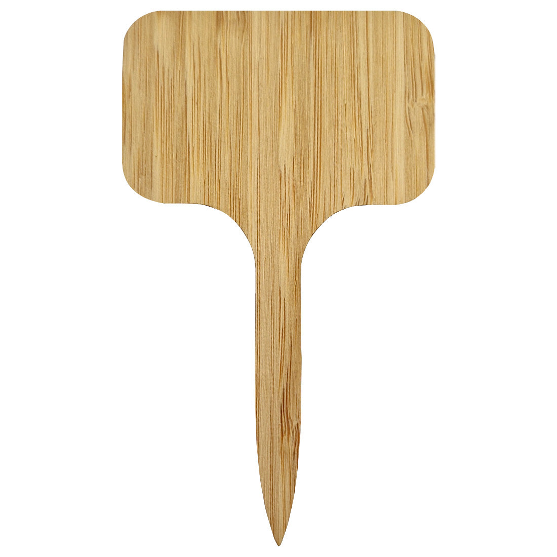 Robuste Bambus-Stecketiketten 60x100 mm für eine einfache Pflanzenkennzeichnung. Schild 60x37 mm, Stock 19x63 mm, 2 mm stark. Wasserfest, nachhaltig, mit Stift oder Aufkleber beschriftbar. Lieferung: 100 Stück pro Packung.